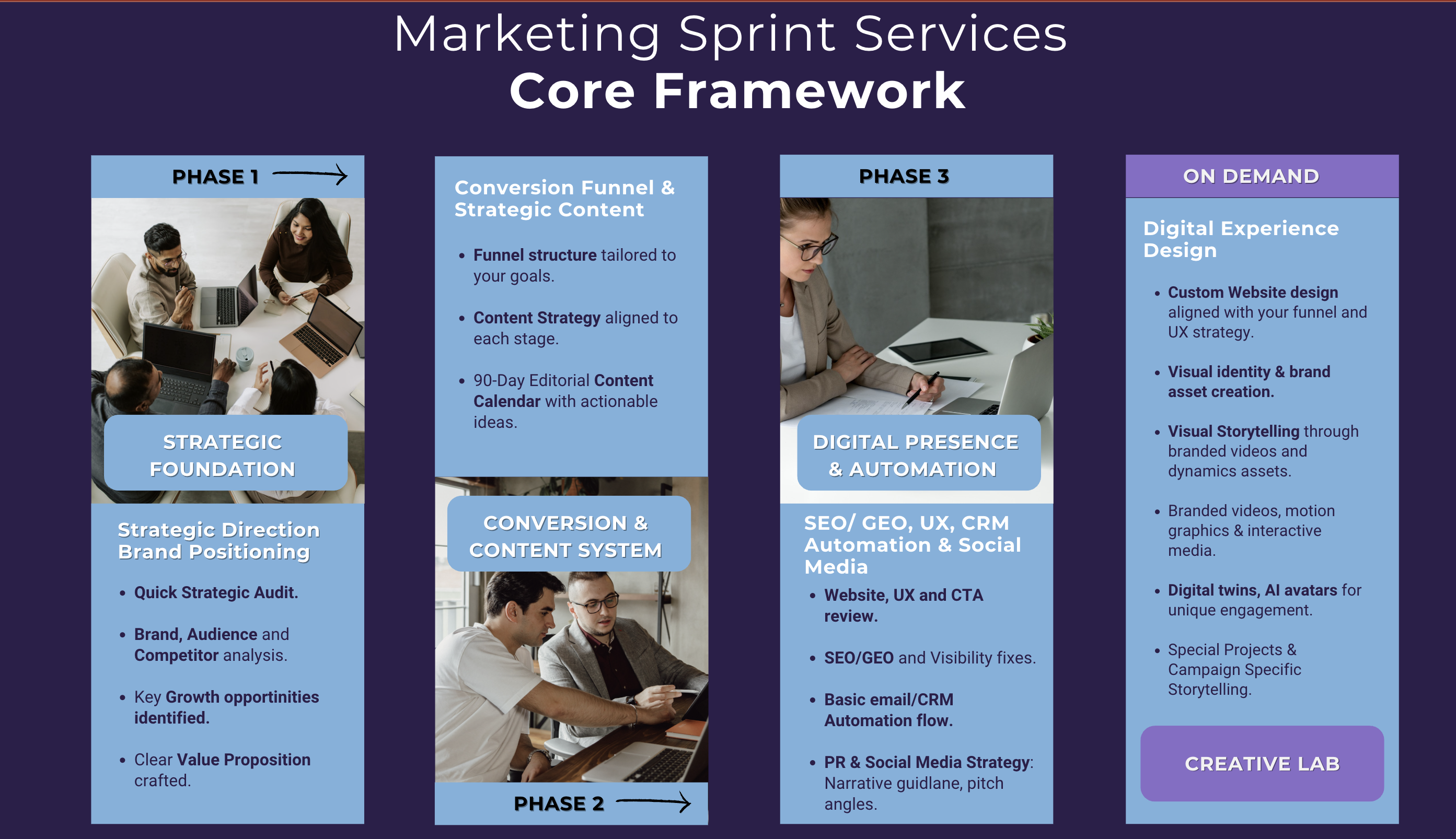 “MarketingSprint.io was created for organizations that need clarity, agility, and results—not layers of meetings or endless decks,” said the founding team. “Our model merges executive strategy, creative execution, and automation, enabling faster, smarter, and more scalable marketing outcomes.”