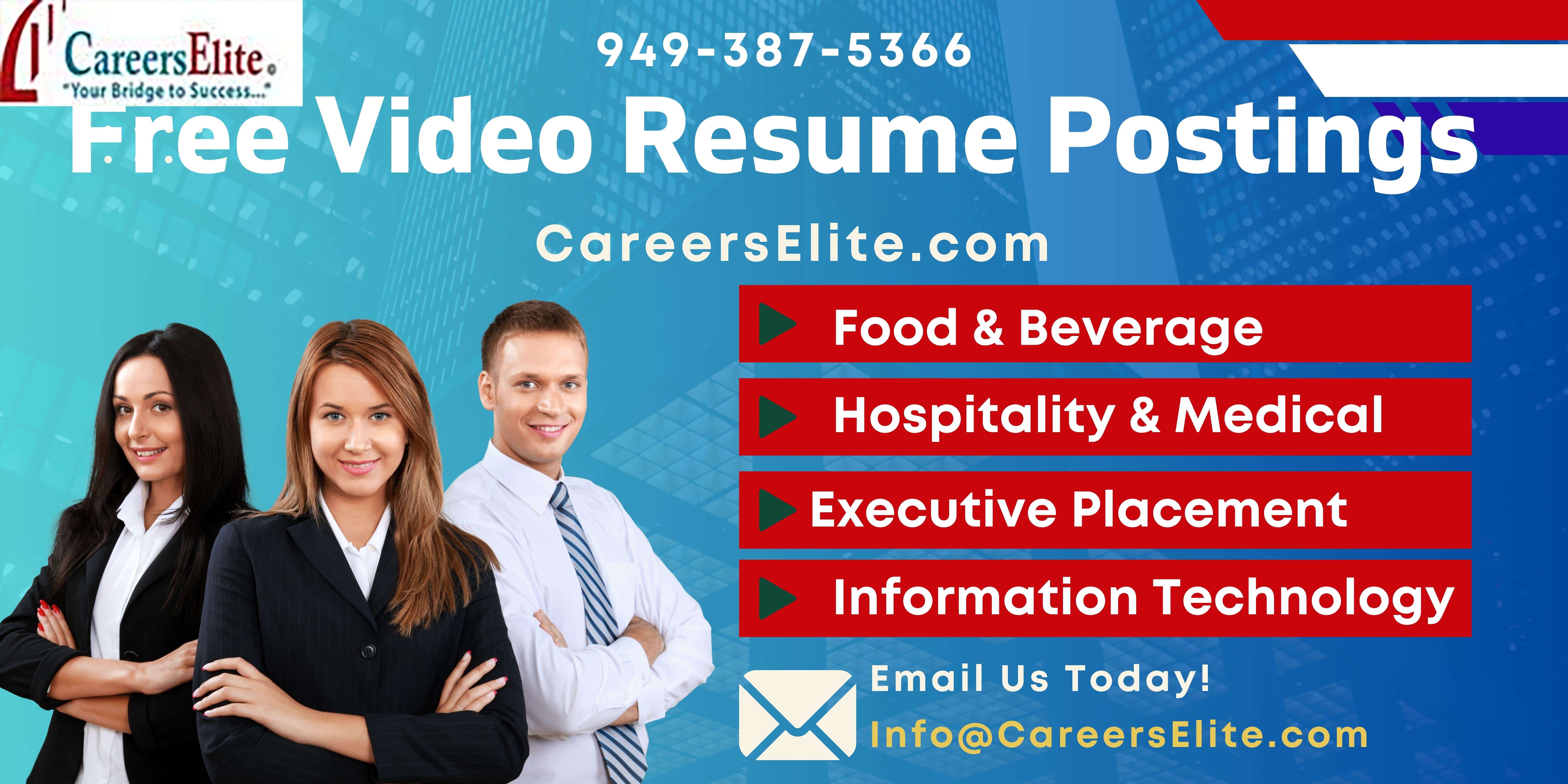CareersElite.com also offers Video Resume and Text Resume Uploads FREE! The benefit of Video resumes offers a company a chance to pre-screen candidates before they interview saving time and money.