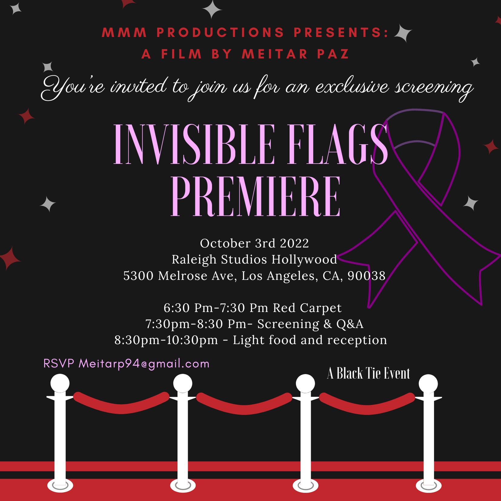 DATE- Invisible Flags is an award-winning film starring Meitar Paz in a lead role drawing attention to a pervasive issue often not regarded as one-Domestic Violence. The film will premiere on October 3rd, 2022, at Raleigh Studios in Hollywood to spread awareness about Domestic Violence as a part of the National Domestic Violence Awareness Month campaign.