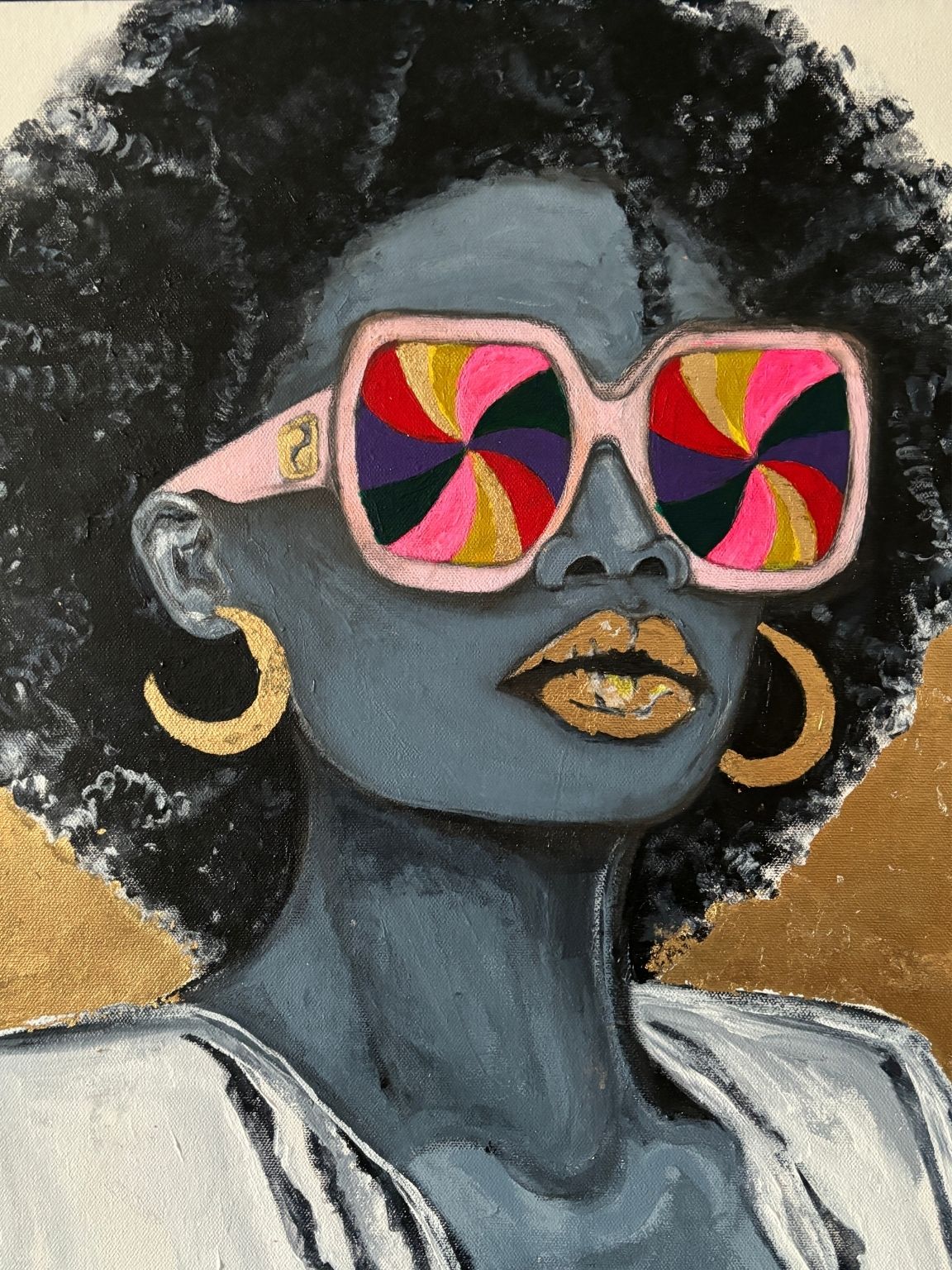 Armstrong’s paintings capture these themes of identity and belonging. Her vibrant portraits of women convey strength and confidence through posture, yet their eyes remain obscured, adding an element of mystery. These enigmatic figures invite viewers to uncover their stories, evoking both personal and shared experiences. Armstrong’s art becomes an invitation to participate in one’s own metamorphosis, navigating the complexities of identity and self-perception.