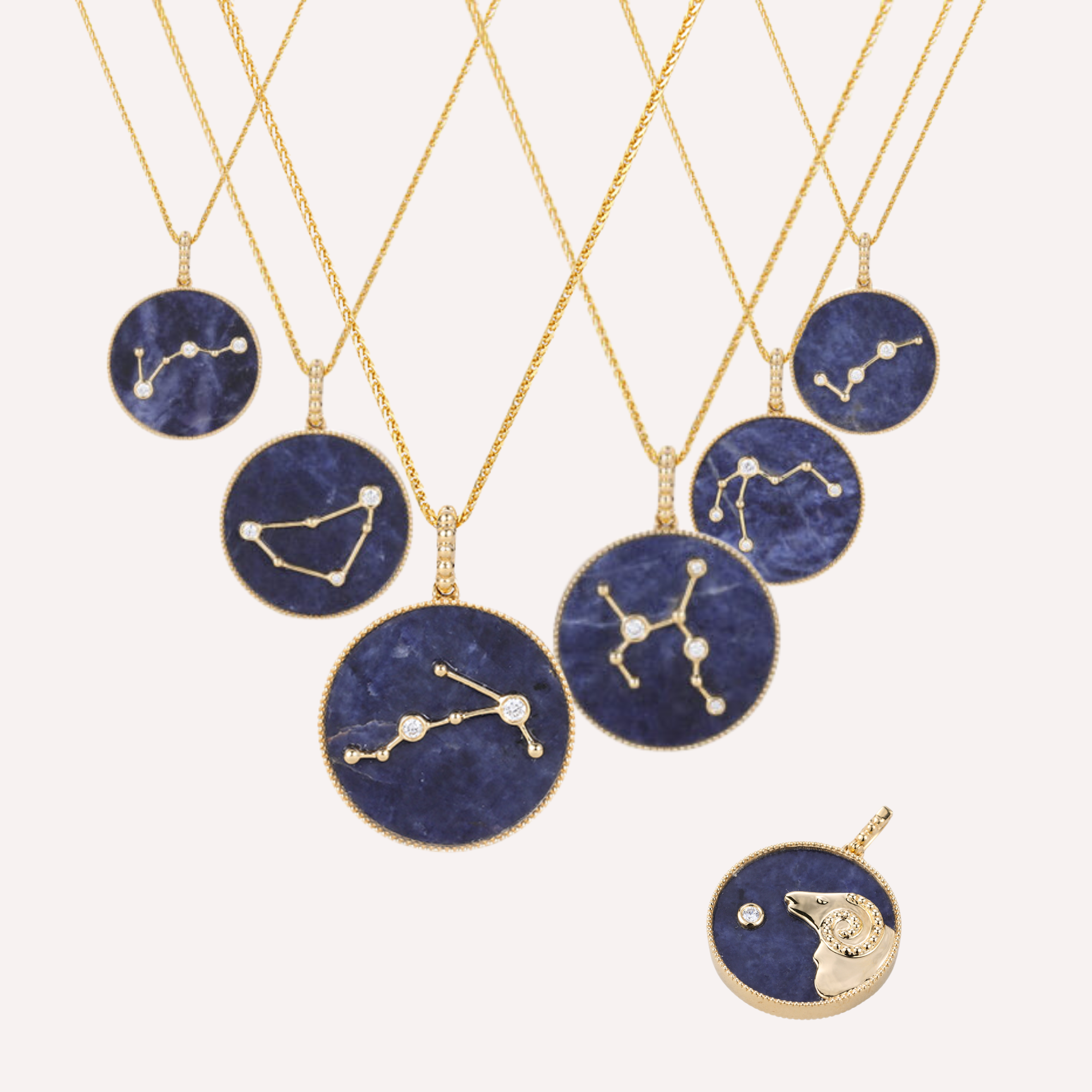 The Necklace Collection encompasses both Zodiac Necklaces and Gemstone Necklaces, with prices ranging from $100 to $1500. The Zodiac Necklaces, inspired by the zodiac signs, feature double-sided designs, sapphire backgrounds, pure gold reliefs, and diamond/birthstone highlights. Additionally, the collection includes an array of necklaces with ruby, sapphire, and emerald, each radiating a unique glow. Whether intended for gifting or personal wear, each necklace is a perfect choice, eagerly awaiting your exploration.