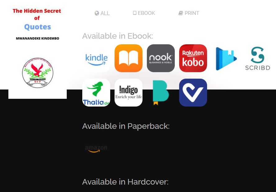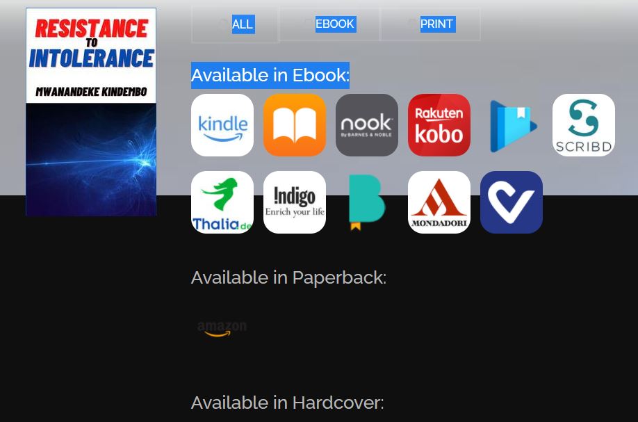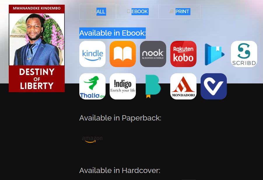 His first book is What They Asked Me: The Fear of Living and Dying Young. The second book Treatise Upon The Misconceptions of Narcissism was published in July 2020. His third book is titled The Hidden Secret of Quotes. It was published in November 2020, four months after the treatise on misconceptions about narcissism was published. The fourth book, Resistance To Intolerance, was released in February 2021. The fifth book, Sinless, was released in April 2021, and his latest book is Destiny of Liberty, released in February 2022. Most of his works can be found on the Internet by searching his nameĀ Mwanandeke Kindembo, on the search engines. Eg. Google Search.