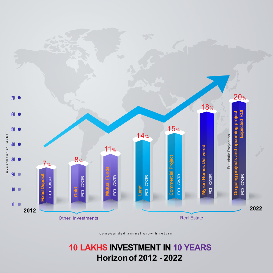 The throngs of customers and investors who stepped into the premises of Myron Homes turned gladder in reaping the fenceless harvest of high-end profits, all the while. Despite the fact that there prevail innumerable pockets offering tantalizing dividends on investments, the earnest believers in the innovative articulation of Myron Homes always preferred Myron Homes as the right choice for the longest series of benefits at large. All the projects Myron Homes executed in its marathon filled the hearts and households of customers and investors with the unimaginable treasure of gaiety and magnificent gains. As other existing trends that promise luring gains and benefits on hard-earned investments with trends of invariably variable waves of capricious calculations, the public is thoroughly rendered listless and fatigued under the deadly dance of disastrous fluctuations when they encountered despair and disgust instead of profits at the end. . Myron Homes stood aloft against all these inconsistent deals of derailing results. The lands, spaces, and constructions of Myron Homes' creation bulldozed the inconsistencies and built an amazing edifice of financial victories for its customers. With many more projects, back and forth, Myron Homes is now engaged in crafting a monumental Mall that is sure to crown the twin cities, Hyderabad and Secunderabad, with manifold spotlights of glory and pomp.