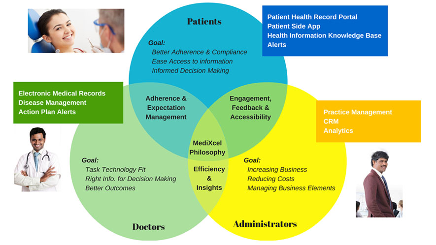 MediXcel currently caters to single and multi-specialty clinics, clinic chains, diagnostic groups, and hospitals of various sizes. MediXcel offers its customers an end-to-end clinical and administrative solution that includes an Electronic Medical Record (EMR) and specialized modules for Inventory, Pharmacy, Laboratory Services, Radiology, Billing, and Insurance management. It also includes an in-build Clinical CRM, an Analytics and Reporting Toolkit, and a Patient Portal. MediXcel also offers its customer's companion apps for Doctors and Patients, both on Android and iOS. Its inbuilt integrations include a TeleHealth system, Accounting Solutions, and a PACS.