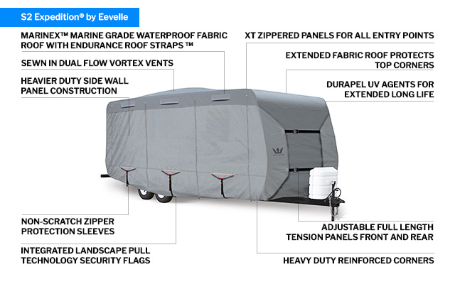 - RV Covers: Built tough for all-season protection, our camper covers are made from Durapel and Tru-Weave fabrics. We offer top-tier brands like Goldline, S2 Expedition, Expedition, and Seasons, delivering premium protection at every price point.