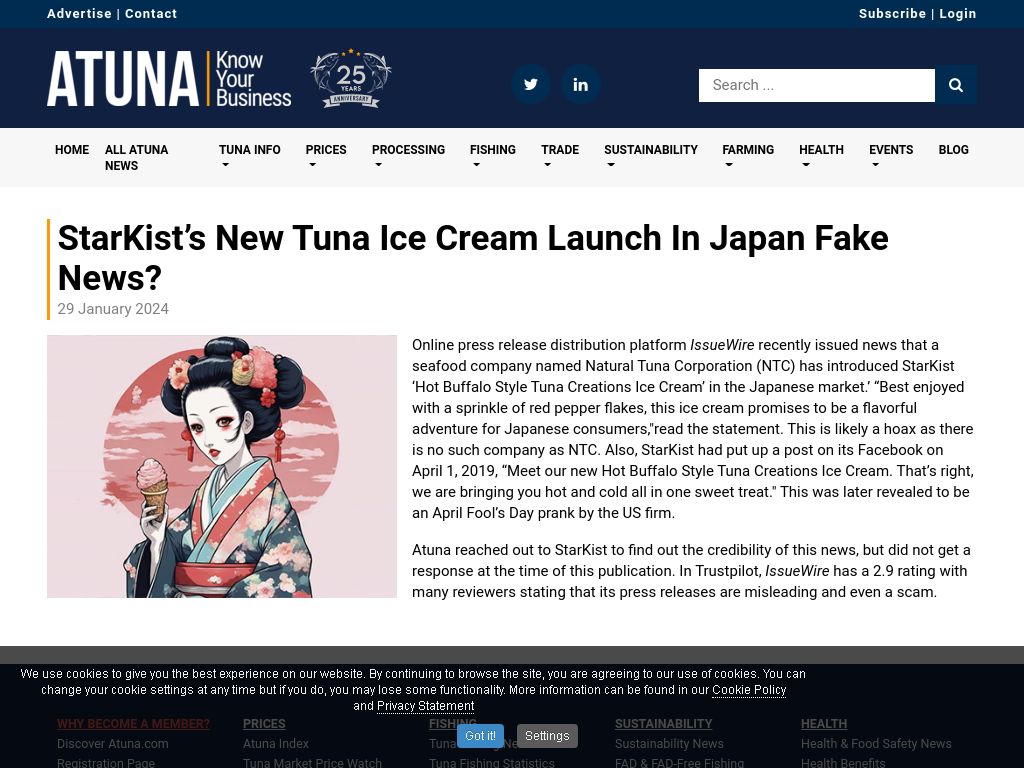 Tokyo, Japan Feb 20, 2024 (Issuewire.com) - In response to recent claims questioning the legitimacy of the launch of StarKist's New Tuna Ice Cream, Natural Tuna Corporation issues this statement to clarify and correct misinformation circulating in the media.