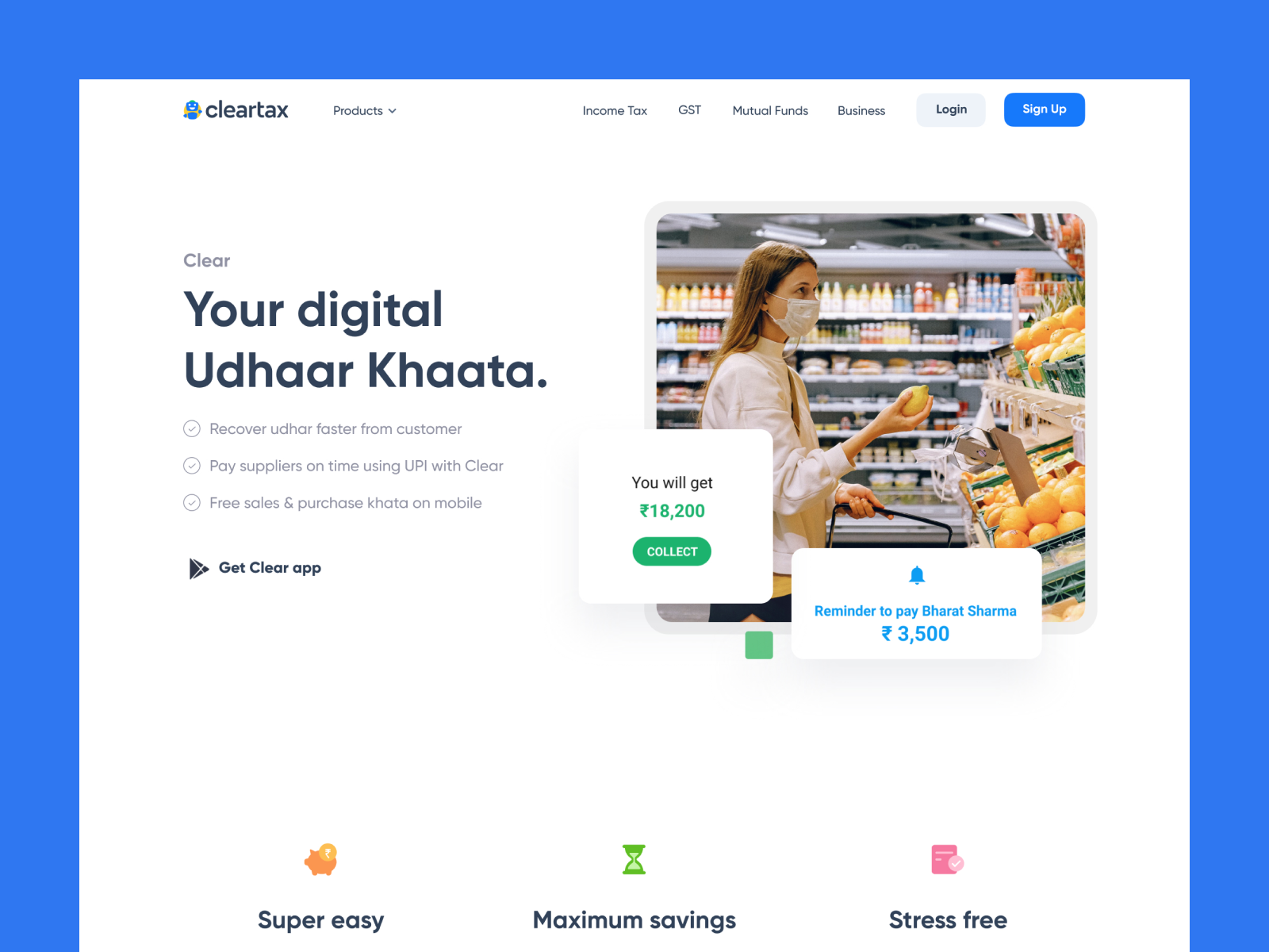 - A comprehensive digital platform that is personalized for every type of customer on the Cleartax website, i.e, salaried professionals, freelancers, businessmen, SMEs, companies, enterprises & more