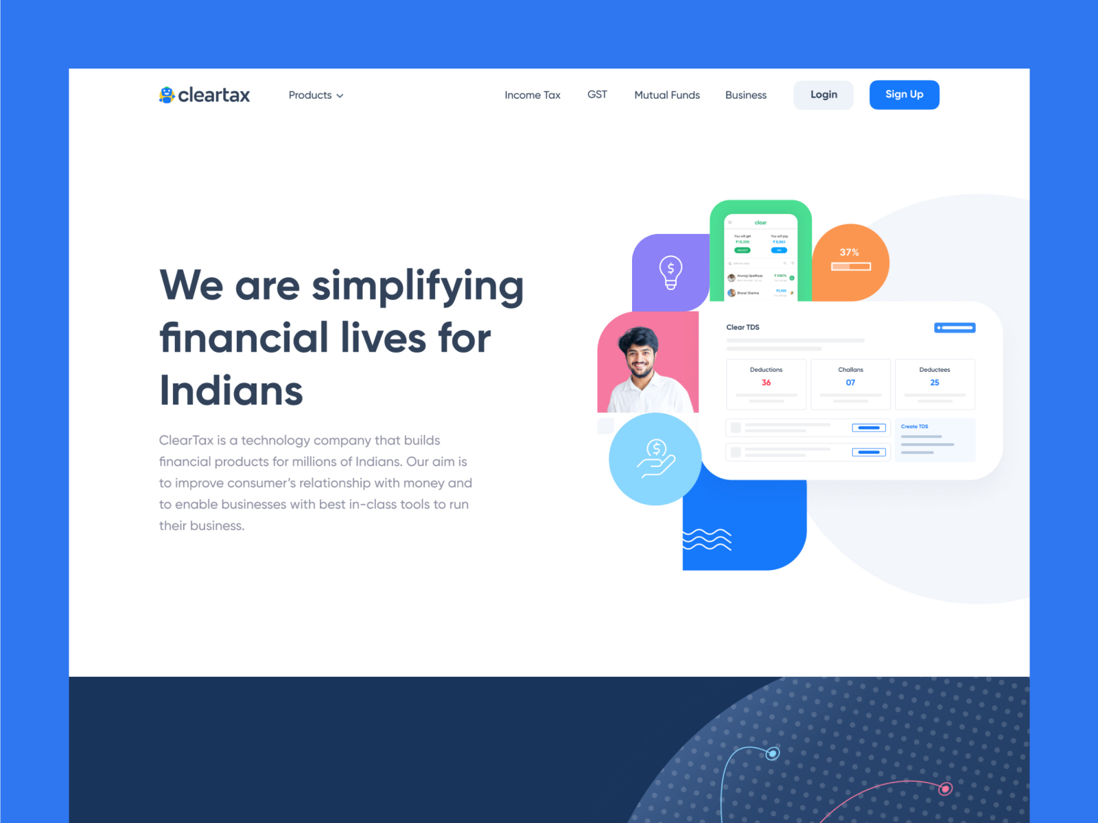 Cleartax approached NetBramha Studios in tackling these major roadblocks for their customers through design. The key design challenges associated with this fintech website redesign were