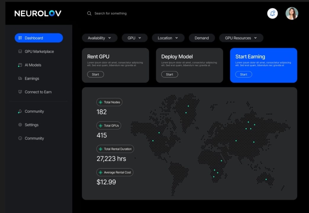 Neurolov is a decentralized computing platform revolutionizing access to GPU resources and AI capabilities. Through innovative browser-based WebGPU technology, Neurolov empowers developers, researchers, and GPU owners to collaborate, scale, and monetize efficiently in a secure and decentralized environment.