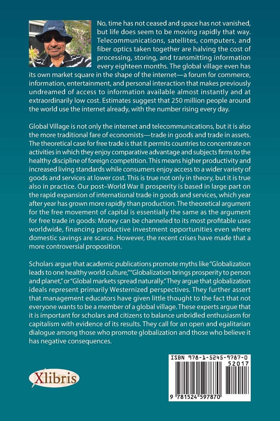 In Global Village and the Economy, the author discusses the scope of global village — from the traditional trade in goods and trade in assets to internet and telecommunications. The author expounds on free trade, including theories, advantages and examples. He also cites arguments from scholars and economic experts on myths, ideals, and perspectives on globalization.
