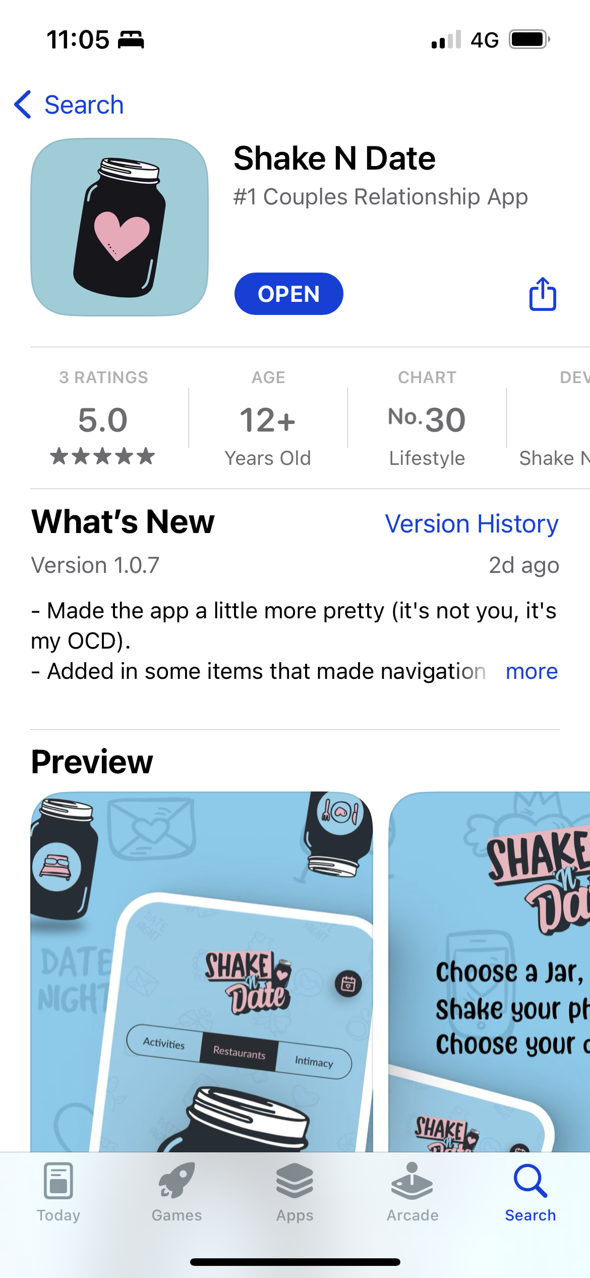 “5 Star Rating: “The BEST app for couples! My partner and I are always so indecisive when it comes to EVERYTHING (eating out, activities, etc)... we spend more time searching than doing. The Shake N Date App has absolutely changed the game for us as a couple. You can pick from 3 jars - restaurants, activities and intimacy - all that can be tailored to be within your budget or activity level. It's super easy to use and I'm recommending it to ALL our friends. Love love love this app”, Said one app User.