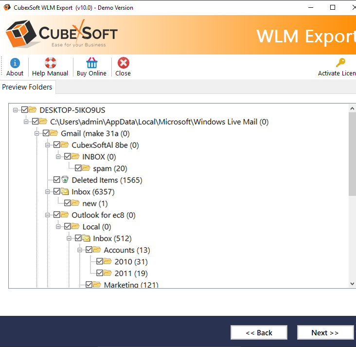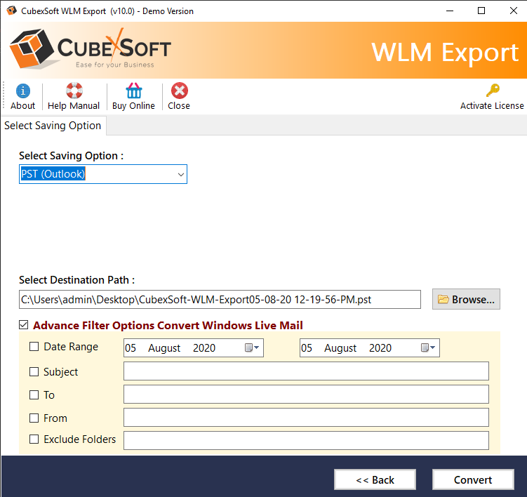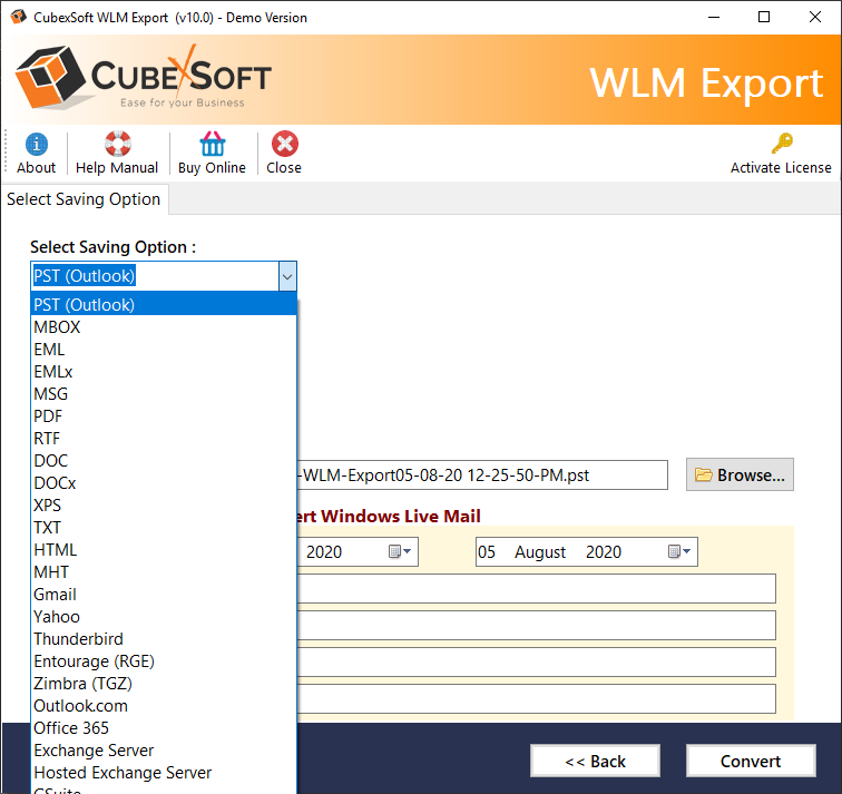 - Choosing a complete Live Mail folder with numerous WLM files can easily export to PST at once.