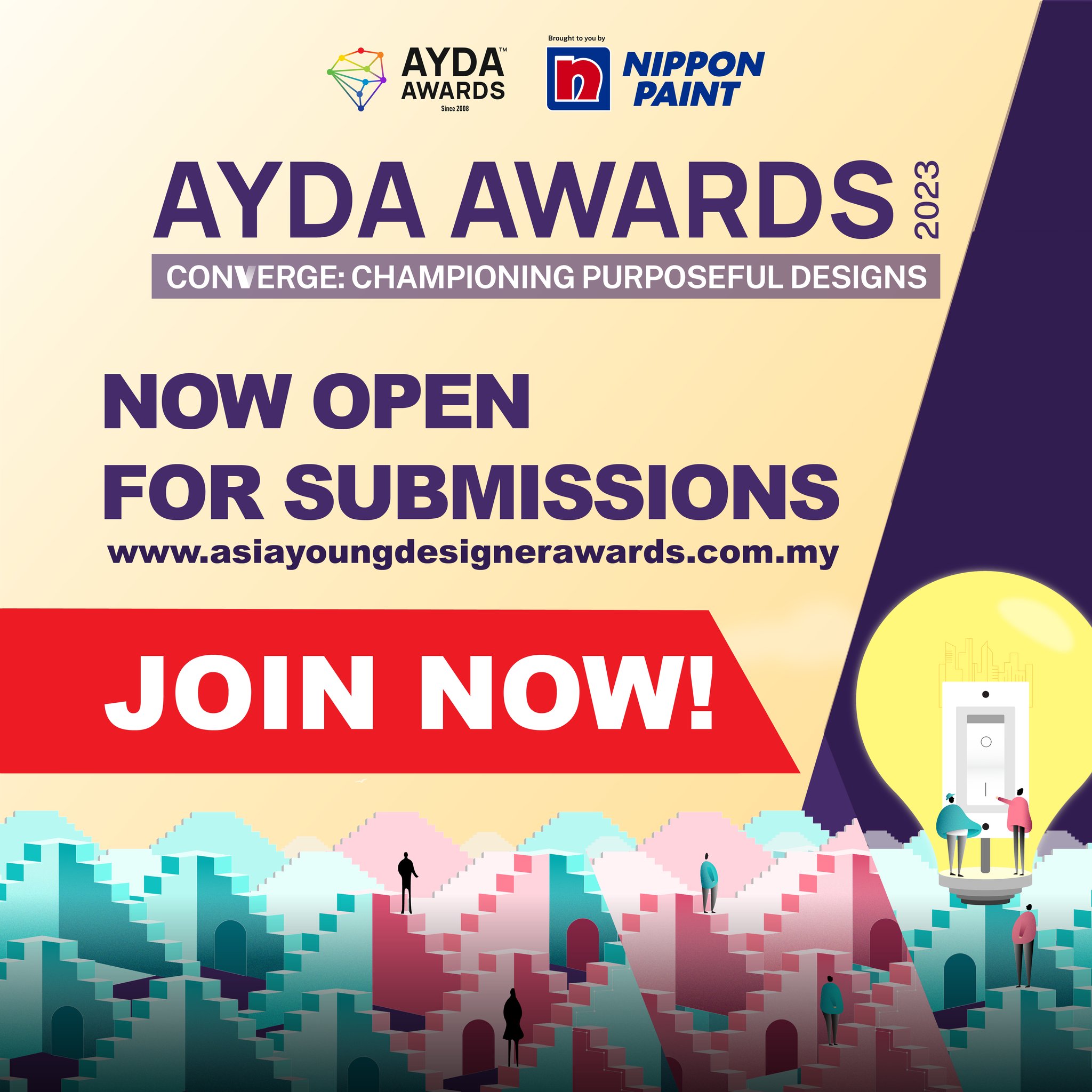 The chosen theme aligns with the pressing need for purpose-driven design solutions in today's world. Asia Young Designer Awards (AYDA) - CONVERGE: Championing Purposeful Design has opened for designs submission from 17-05-23. Design enthusiasts currently pursuing their education in design-related fields are invited to submit their projects and be a part of this prestigious competition. The submission deadline is 6 October 2023, and participants are encouraged to review the guidelines and eligibility criteria available on the official AYDA website.