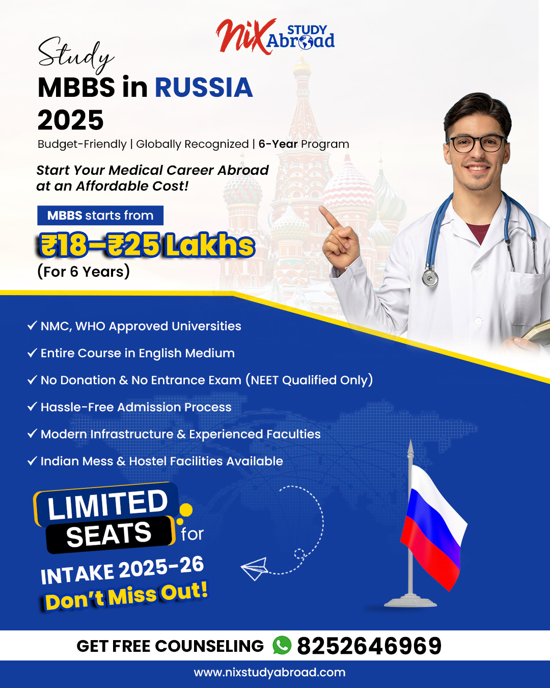 Start Your MBBS Journey in Russia Today with Nix Study Abroad – Admissions Open for 2025!