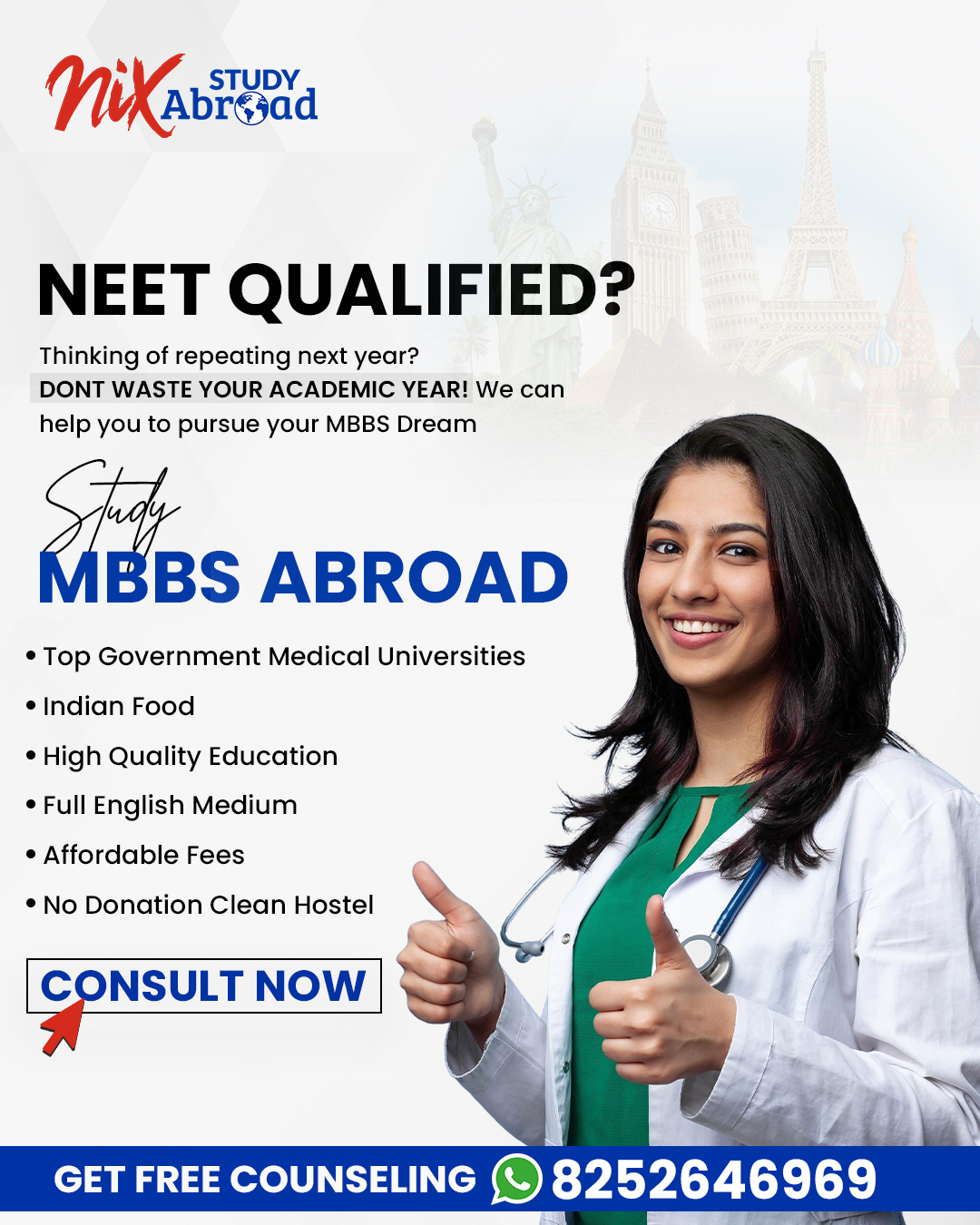 Russia has emerged as a premier destination for medical education, offering low-cost MBBS programs, English-medium instruction, NMC-approved universities, and world-class infrastructure. Nix Study Abroad is committed to making the dream of becoming a doctor abroad accessible for every eligible Indian student.