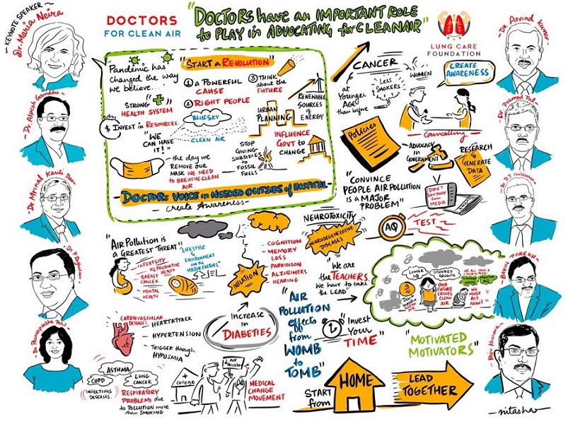 Presidents of 7 specialty national medical associations, representing over 130,000 Doctors, shared research linking air pollution and health and asked fellow medical professionals to take the lead to advocate for clean air and ask citizens and policymakers to ensure Clean Air for All for a healthy and productive India.