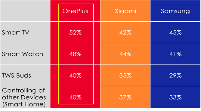 - OnePlus is the only premium brand in the smart TV segment along with the TV incumbents like Sony, LG, and Samsung. Although Redmi is also used by around 13% of the premium users, the brand isn’t considered a premium brand in the smart devices ecosystem.