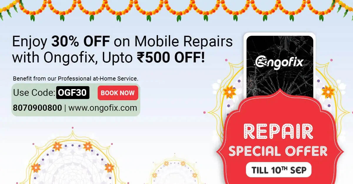 Navi Mumbai, Maharashtra Sep 6, 2024 (Issuewire.com) - As the festive season approaches, Ongofix, a leading mobile repair service provider, is delighted to announce a special festive offer for its customers. Starting today and valid until September 10th, Ongofix is offering a remarkable 30% discount on all mobile repair services, with a maximum benefit of Rs. 500 off. This limited-time offer is designed to make professional, high-quality mobile repair services more accessible and affordable to everyone, just in time for the festive celebrations.