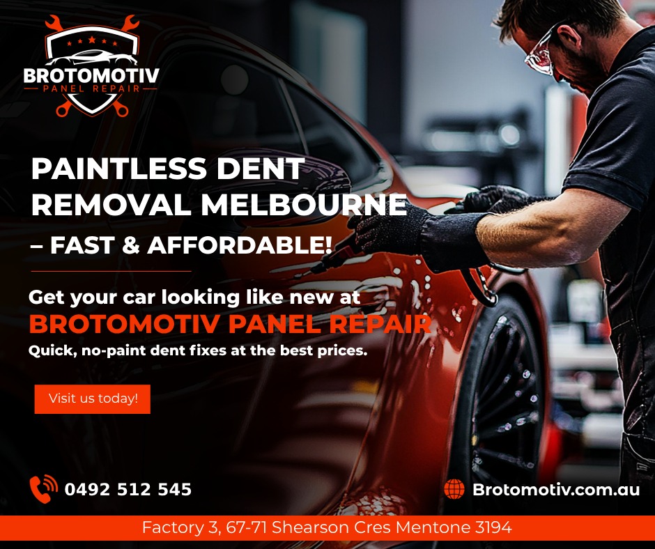 Melbourne, Victoria Feb 27, 2025 (Issuewire.com) - Welcome to Brotomotiv, your trusted name for Paintless Dent Removal in Melbourne. We specialize in professional, high-quality dent repair services that maintain your vehicle’s original finish without the need for repainting. Our expert team utilizes advanced techniques to remove dents and dings efficiently, ensuring a cost-effective and environmentally friendly solution.