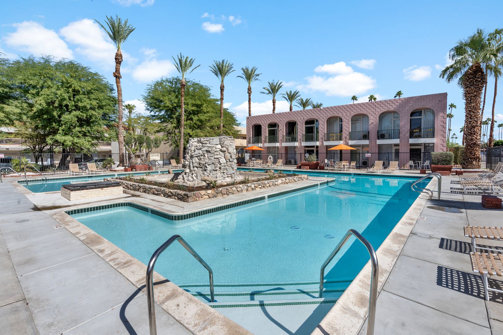 Palm Desert Suites is a fully renovated boutique independent hotel offering modern luxury suite-style accommodations in Palm Desert, California. With 700 sq. ft. suites featuring full-size kitchens and contemporary design, the property delivers a spacious and comfortable retreat for travelers visiting the Coachella Valley for leisure or extended stays. The hotel features resort-style amenities including two pools, a jacuzzi, and proximity to top shopping and dining destinations.