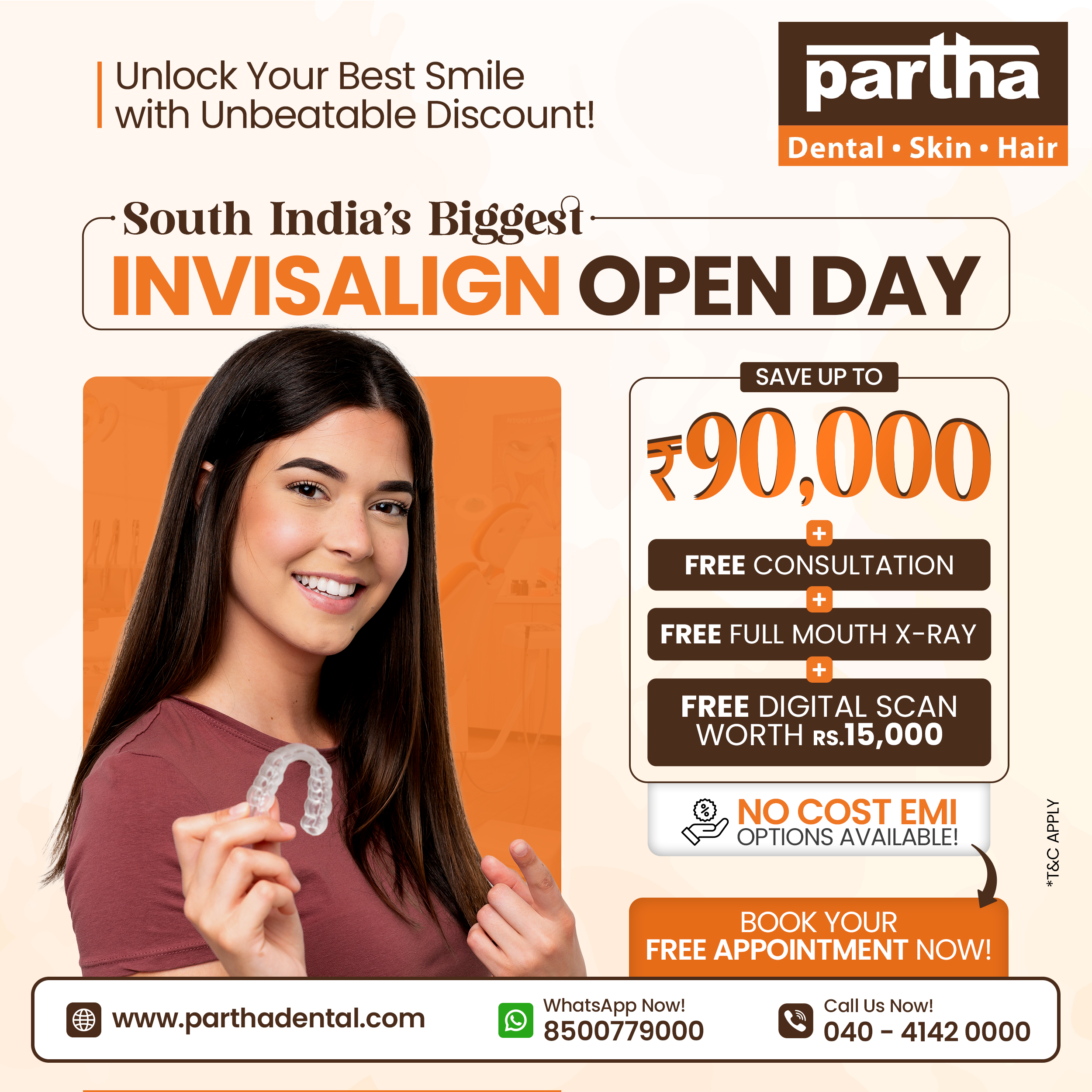 Hyderabad, Telangana Jun 20, 2025 (Issuewire.com) - Partha Dental, South India's leading chain of dental, skin, and hair clinics, is proud to announce South India’s Biggest Invisalign Open Day, a landmark event aimed at making world-class orthodontic care more accessible and affordable than ever before.