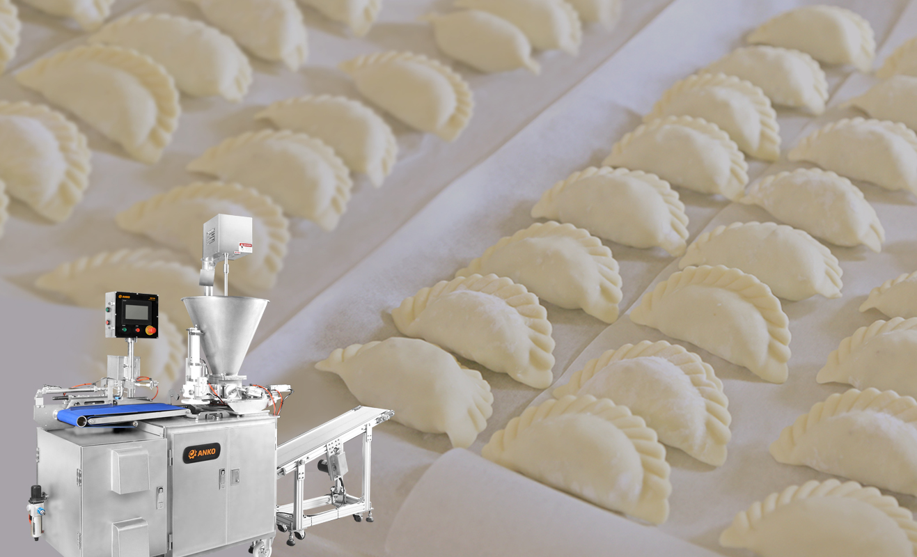 Currently, there are two types of Empanada machines on the market; one uses extrusion-type filling mechanism and the other utilizes a clamping mechanism. ANKO researched and developed our "EMP-900 Empanada Making Machine," combining the advantages of the two existing mechanisms, creating a machine that can make Empanadas with a high oil content dough, up to 75% water and oil mixture. It is adaptable to a wide variety of pastry dough, and the unique filling system can process minced beef, whole green peas, and corn kernels without the ingredients being crushed or smashed. These Empanadas are then deep-fried into a golden and crispy product with a light and airy texture just as they were handmade. This immediately created great market interest in ANKO’s machine upon its launch.