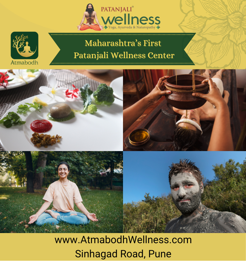Atmabodh - Maharashtra’s first residential Patanjali Wellness Center in Pune offers therapies and treatments based on Yoga, Ayurveda, and Naturopathy bringing services similar to the trusted Yog Gram and Niramyam centers and has been serving people with various lifestyle diseases as well as people interested in detoxifying their minds and bodies. Atmabodh provides researched-based healing of several ailments (such as diabetes, depression, obesity, joint pain, liver & kidney-related diseases, and many others) using a holistic 360-degree approach, including Sattvic Aahar.