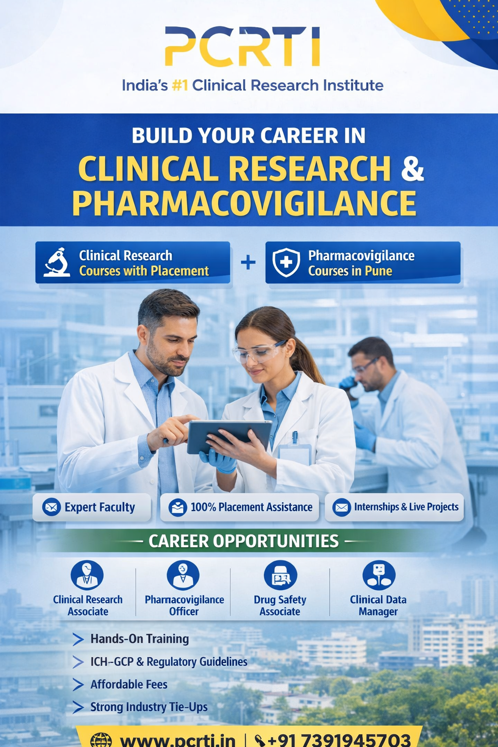 Pune Clinical Research Training Institute (PCRTI) invites aspiring candidates to enroll in its Clinical Research Courses with Placement and Pharmacovigilance Courses in Pune.