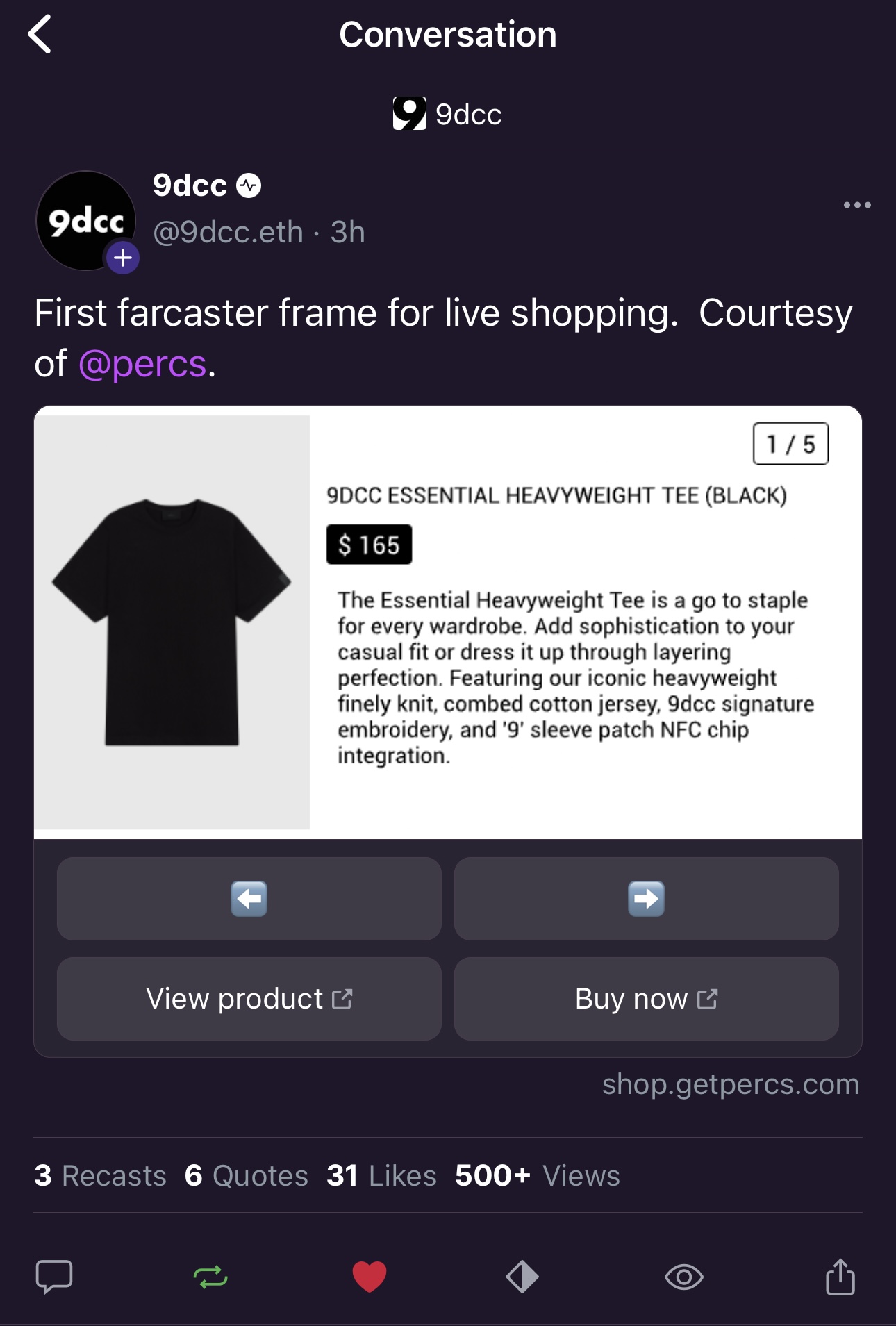 PERCS Frames is already live in a private beta in the Shopify app store, and several pioneering brands are showcasing its transformative power. The company is thrilled to announce that 9dcc, the first web3 luxury clothing brand, is among the first to pilot PERCS Frames. Their experience is a testament to the power of this integration to drive engagement, boost sales, and build a passionate community.