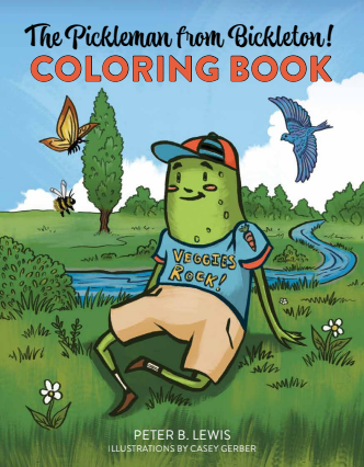 “The response to The Pickleman from Bickleton! has been terrific, and I wanted to give kids of all ages a fun way to interact with it,” comments author Peter B. Lewis. “I was so happy to hear from kids and parents about how much fun they had reading the Pickleman book aloud, how much it taught kids about pickles and gardening. Our new coloring book celebrates illustrator Casey Gerber’s wonderful illustrations, and allows everyone to express themselves in color!”