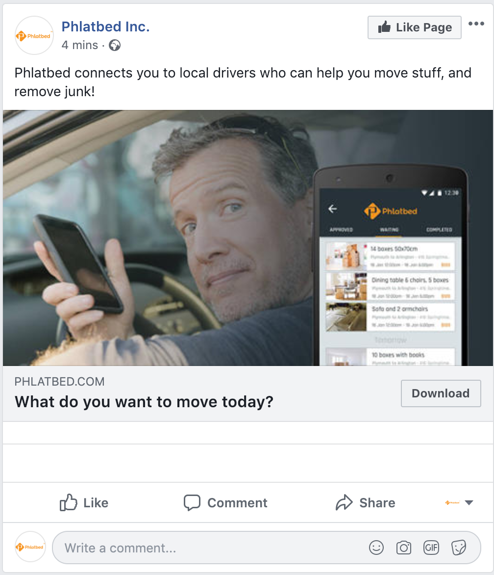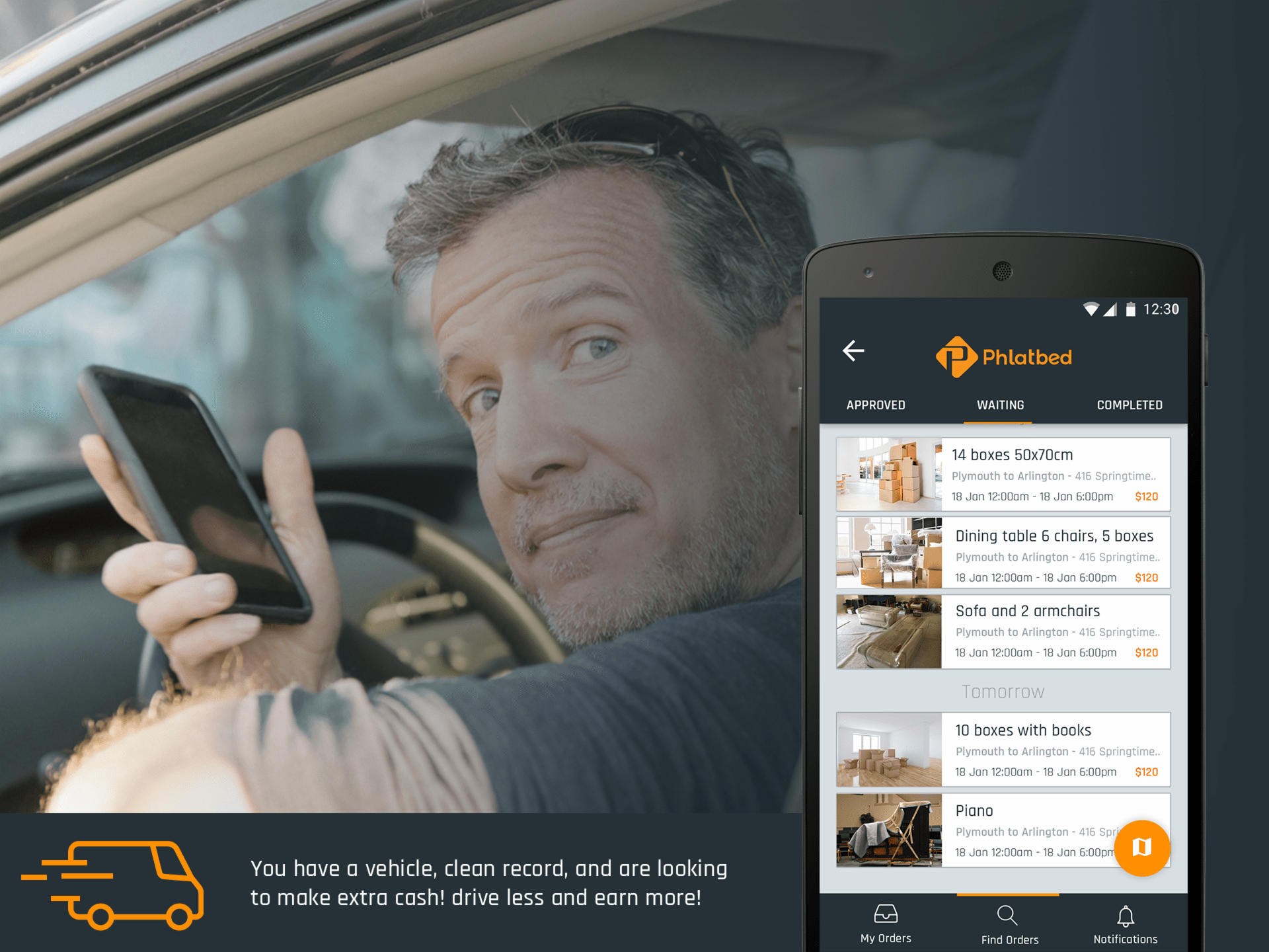 Phlatbed is available for download on Android or iOS devices. In less than a minute, users can post a description of the item they need moving, along with images and pertinent details such as when the move is needed and the locations from where and to where the item needs to be moved. After that information is inputted, the user can name the price they are willing to pay. Drivers then respond to the move request and book the job.