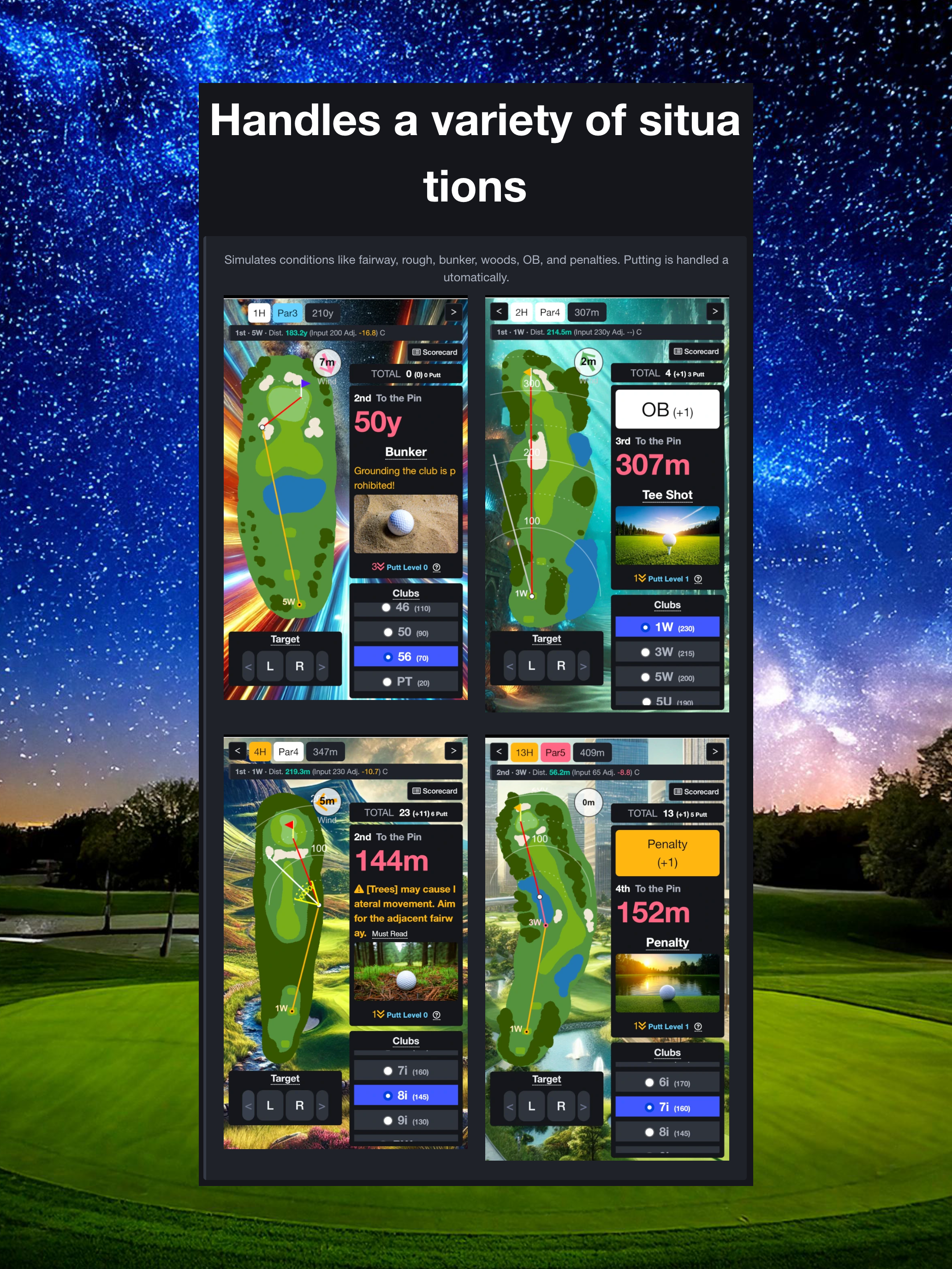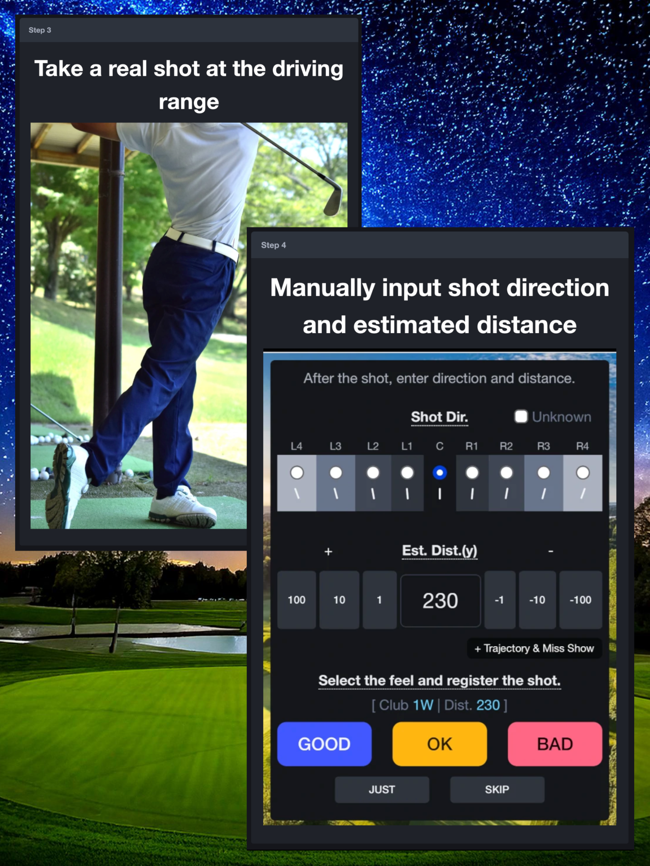 Just select your club and target, then input the shot direction and estimated distance. No need for complicated measuring devices.
