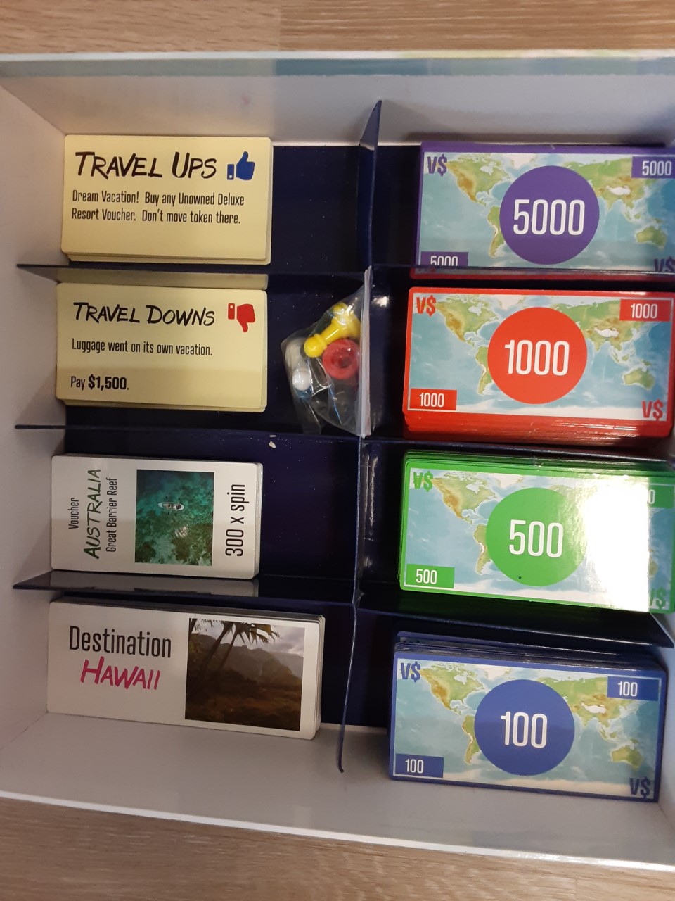 U.S. Patented Vacation Spin board game offers travel to 8 exotic Destinations, with varying prices simulating real variables of travel. An invention has to be Unique and Novel to be awarded a Patent. Vacation Spin provides entertainment and competition. Players exercise their brains to strategize how to be the Winner! This game encourages players to travel more, play on vacation such as aboard cruises, or dream about travel from home.