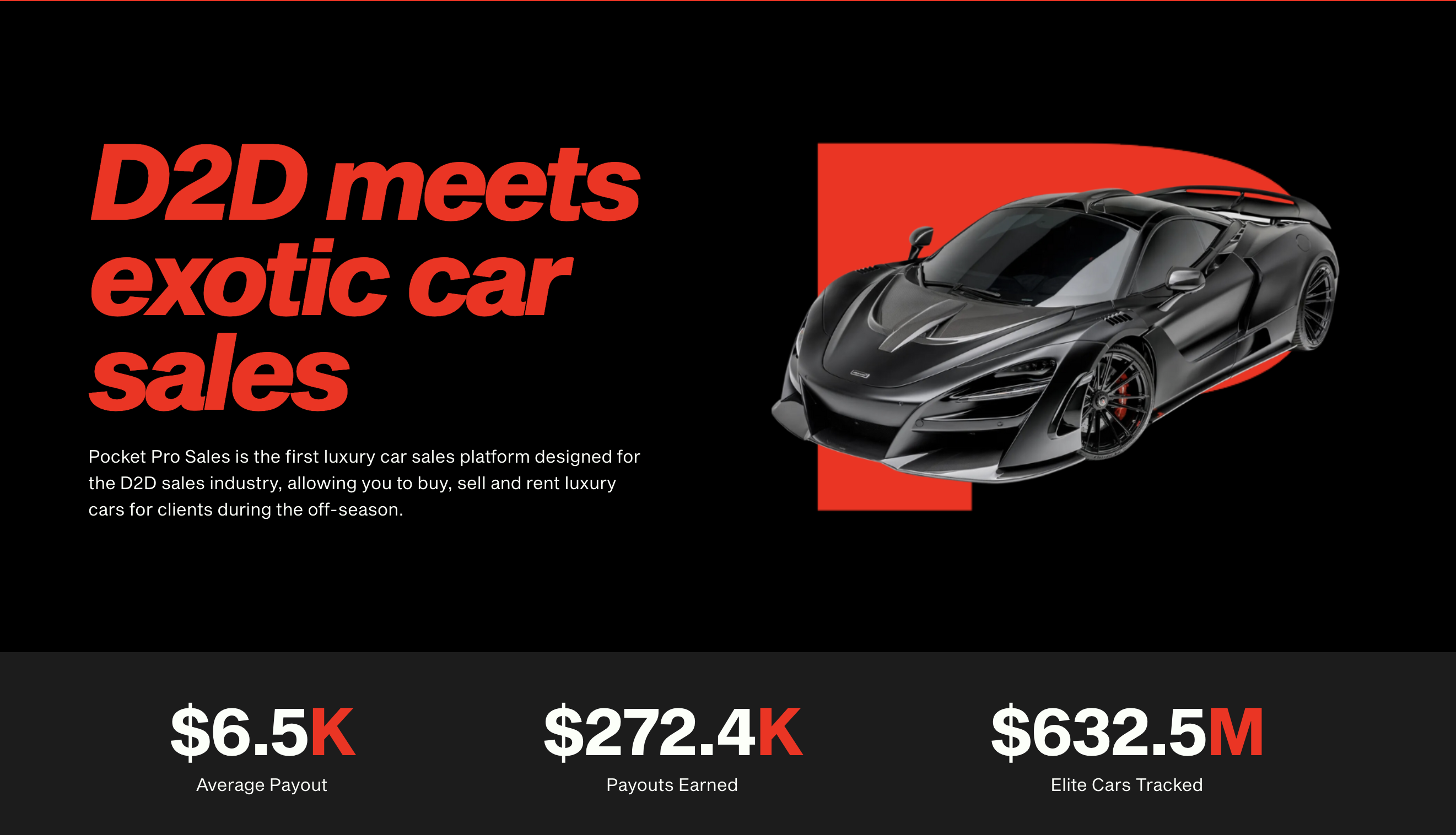 Orem, Utah Aug 14, 2024 (Issuewire.com) - Pocket is excited to announce the launch of its groundbreaking sales program, Pocket Pro Sales, tailored specifically for the door-to-door (D2D) sales industry. This first-of-its-kind initiative empowers D2D reps to leverage their off-season by buying, selling, or renting luxury cars for clients, all while earning substantial commissions.