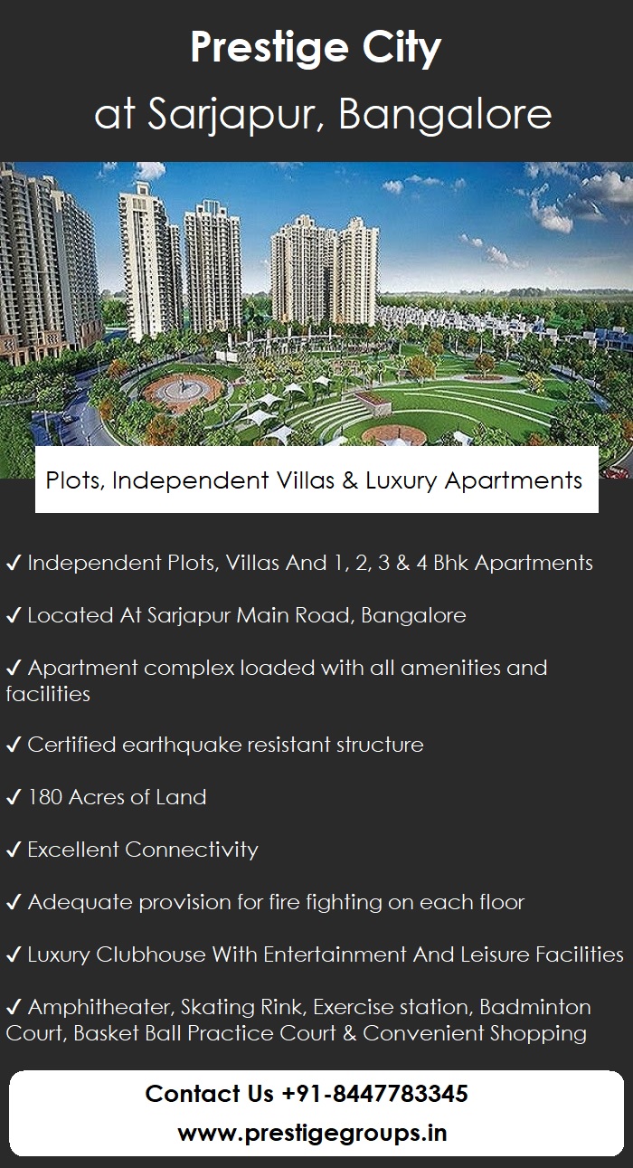 Bengaluru, Karnataka Jul 31, 2021 (Issuewire.com) - Prestige City New Launch Project by Prestige Group is a residential masterpiece positioned to precision at Sarjapur road in Bangalore. The project offers Independent Plots, Villas, And 1, 2, 3 & 4 Bhk Apartments with exclusive plots and villas spread across 180 acres.
