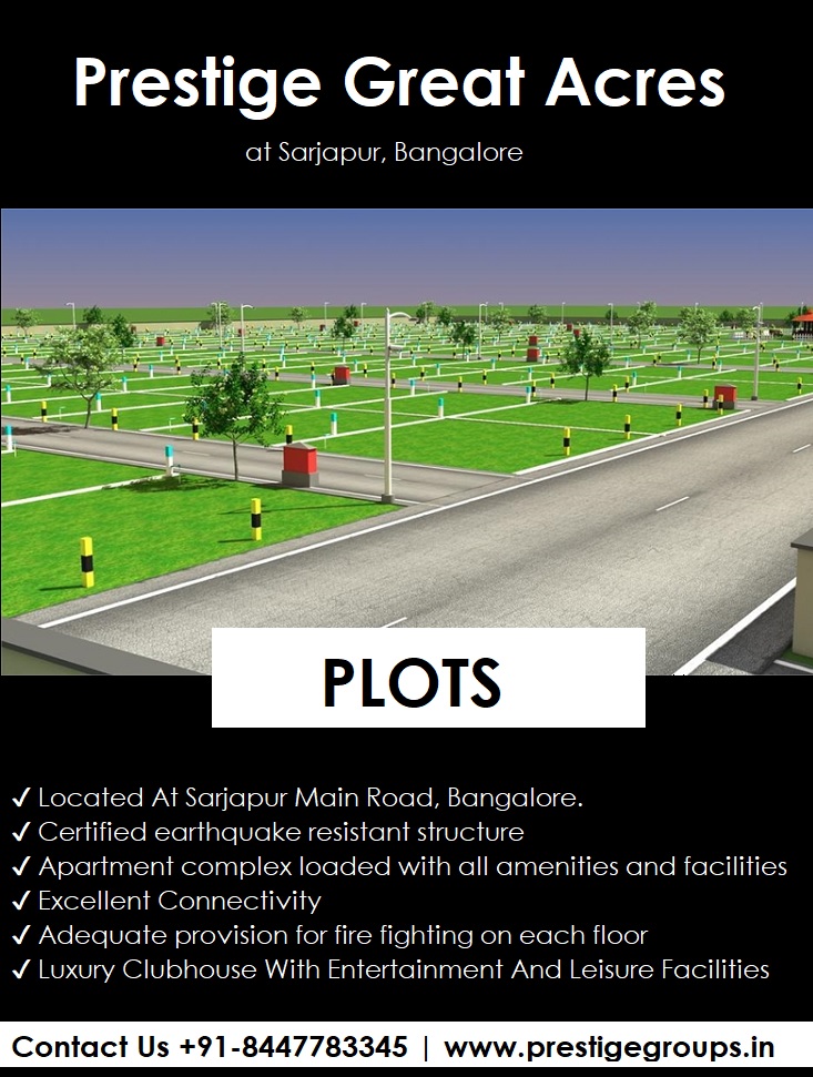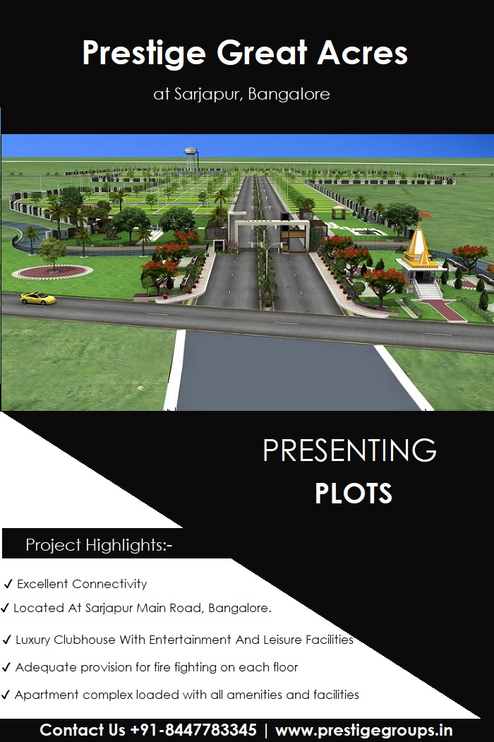 Prestige Great Acres Plots Bangalore Development is yet an increased strange highlight in the range of Prestige Group who are in the business of involvement a luxury populated residence for all sections of Homebuyers for last sufficient areas and have won ample accolades for their quality work in this sector.