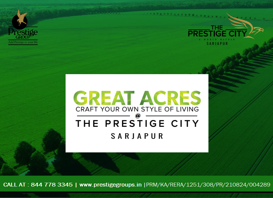 Prestige Great Acres is a well-planned community of villa plots spread over approximately 80 acres and located in Sarjapur, a rapidly developing region in East Bengaluru. It is a part of the upcoming “The Prestige City” Township, which comprises villa plots, apartments, villas, and a proposed Forum retail mall.