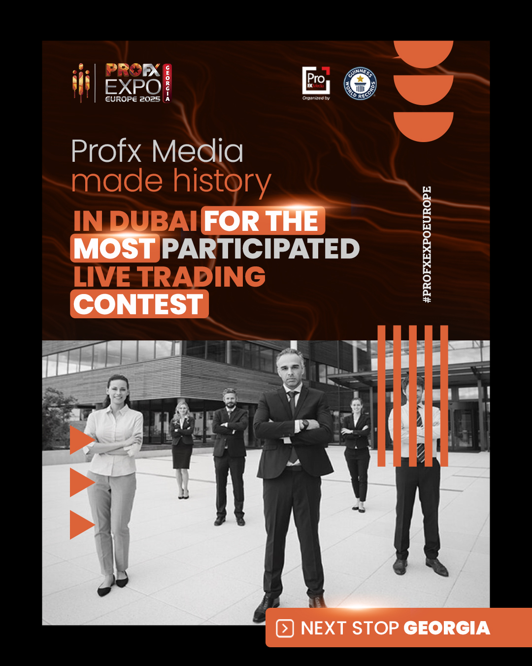 ProFX Expo Georgia comes on the heels of an extraordinary milestone. The Dubai edition of the event, ProFX Expo MENA 2025, officially made history by setting a Guinness World Record for the “Most Participants in a Trading Competition.” This incredible feat captured global attention and underscored ProFX Media’s role as a pioneer in scaling impactful financial events.