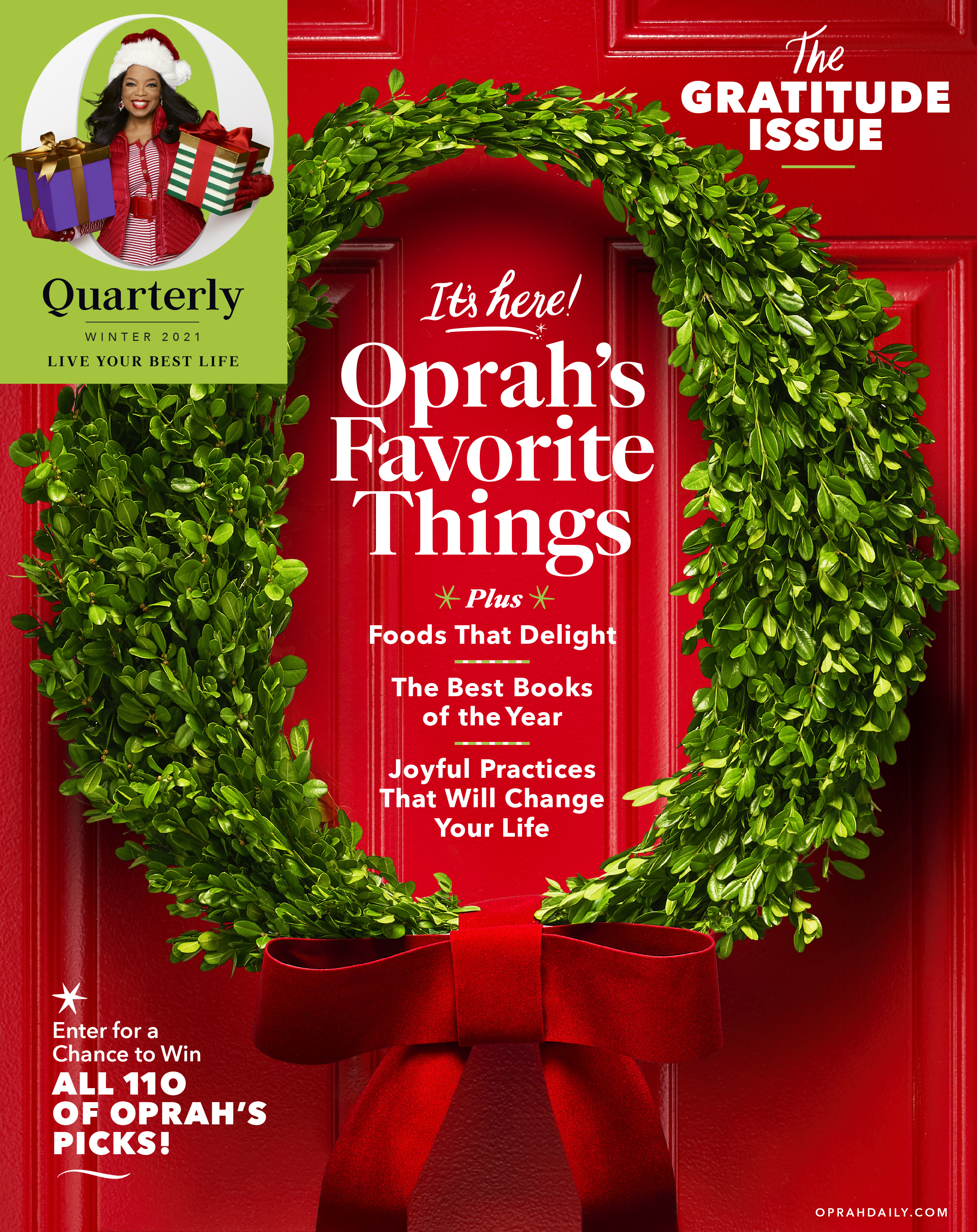 Twelve lucky readers will have the chance to win all 110 items on Oprah’s Favorite Things List in the 12-Day Give-O-way Sweepstakes (www.oprahdaily.com/12days-2021), which runs from November 12 through November 23.
