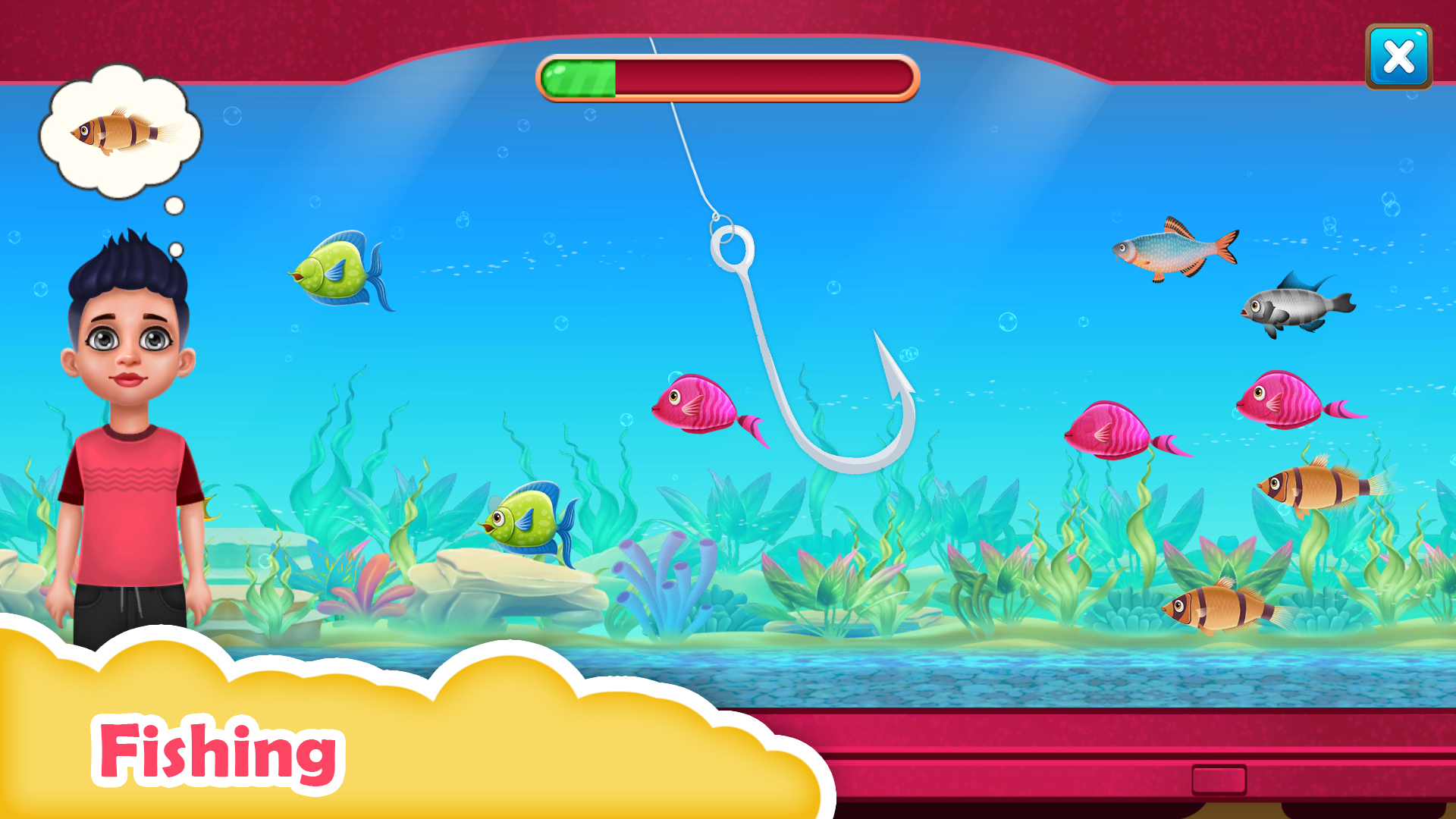 Fun Fishing: With the variety of colourful fish in this game section, it feels like going on a fishing trip! Funny sounds, mostly turtle and crab, are so funny.