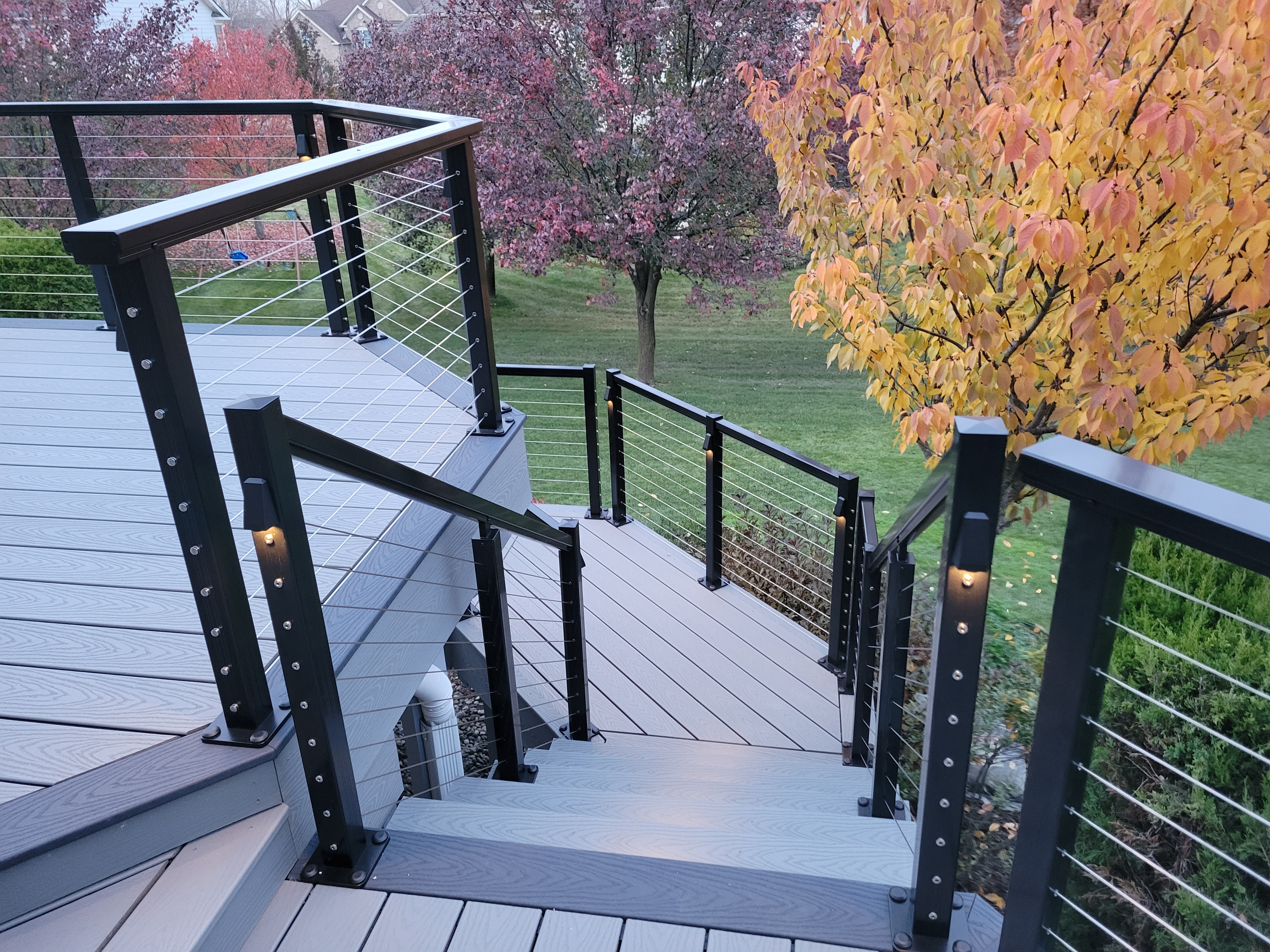 Cable railing provides modern aesthetics and unobstructed views, perfect for properties where preserving sightlines matters. Aluminum railing offers virtually maintenance-free performance that Wisconsin homeowners appreciate, resisting rust and weathering. Composite railing combines traditional appearance with modern durability and low maintenance.