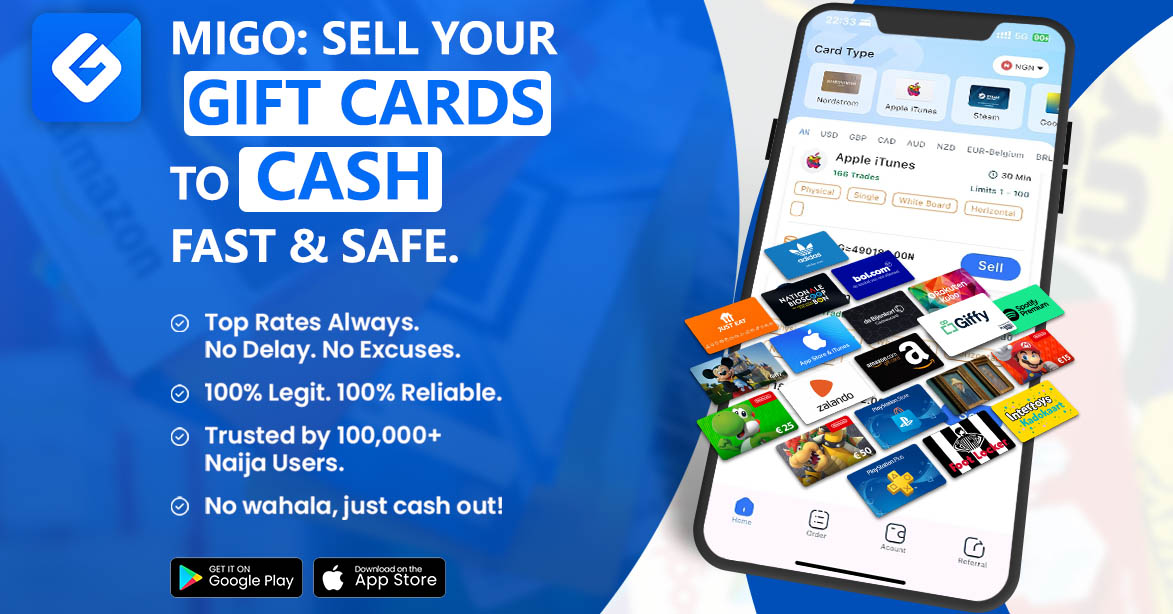 Migo - Sell Gift Cards is a digital trading platform providing secure and instant gift card-to-cash conversion for users in Nigeria and Ghana & Worldwide. The service supports 30+ gift card types, including Apple Gift Card, Amazon Gift Card, Steam Gift Card, Google Play Gift Card, Razer Gold Gift Card, Xbox Gift Card, PlayStation Gift Card, Roblox Gift Card, Vanilla Gift Card, Walmart MoneyCard, Target Gift Card, Macy’s Gift Card, Best Buy, GameStop, Nike Gift Card, Foot Locker Gift Card, Sephora Gift Card, Nordstrom, Coach Gift Card, Dollar General, NetSpend, Lowe’s, Paysafe Card, MoneyPak, American Express (Amex), go2bank, and One4All. For more information, visit the official website.