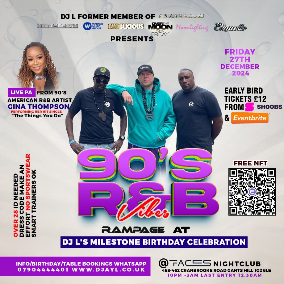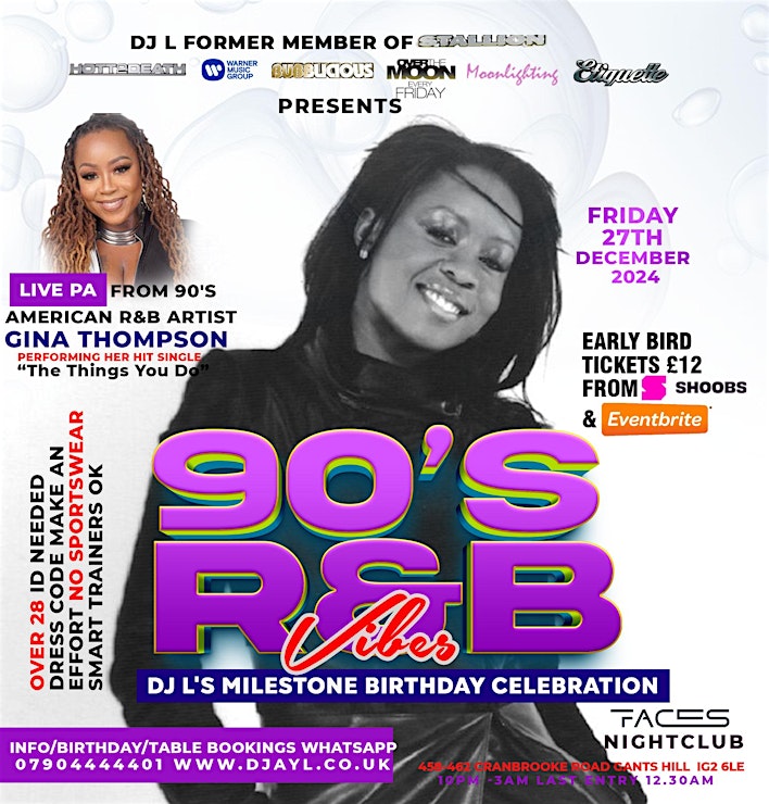 Leyton, London Dec 11, 2024 (Issuewire.com) - R&B Icon Gina Thompson to Headline DJ L’s Birthday Bash at Faces Club, London London, UK – International R&B sensation Gina Thompson will headline an exclusive event at Faces Club, Gants Hill on 27th December 2024, as part of DJ L’s milestone Birthday Party. Fans can expect a night of electrifying music, soulful vibes, and unforgettable entertainment. Thompson, best known for her iconic hit “The Things That You Do”, has long been celebrated for her powerhouse vocals and timeless contributions to the R&B genre. This performance marks her highly anticipated return to the UK, where she holds a devoted fanbase. Expressing her excitement, Gina shared: