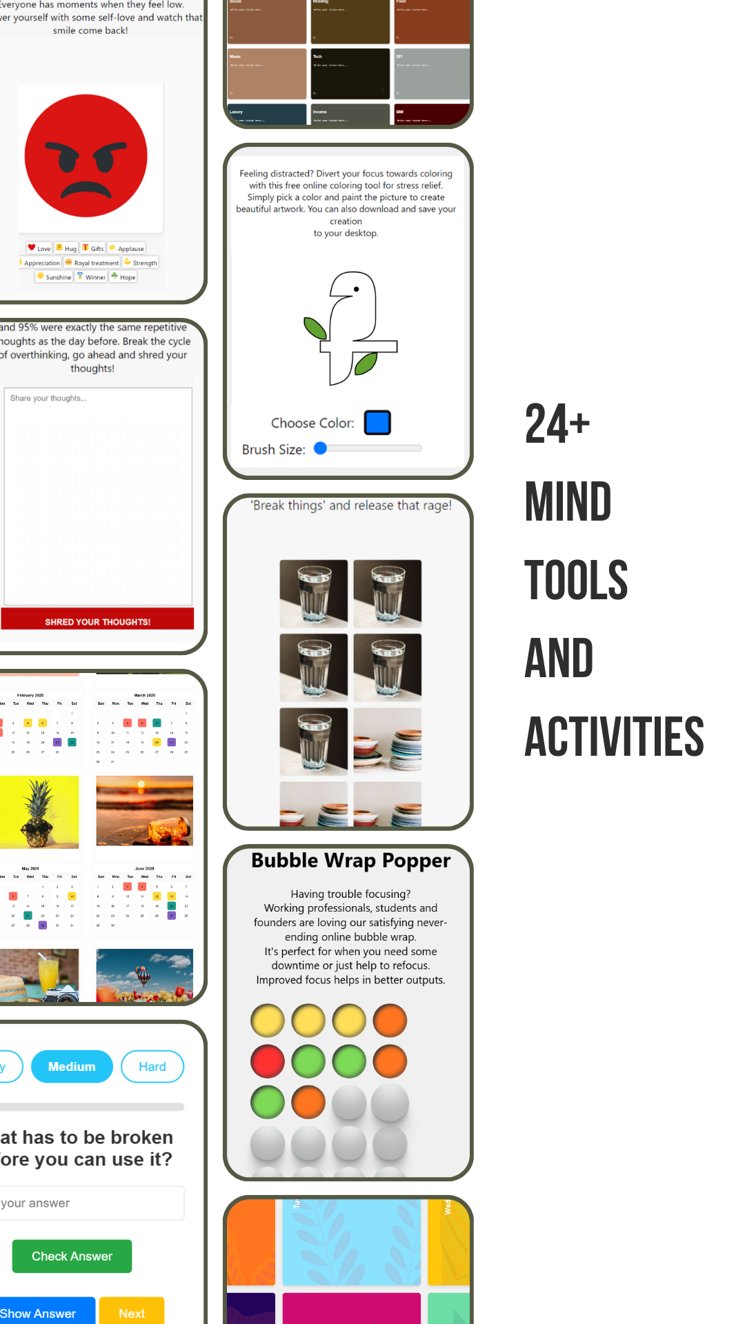Unlike traditional mental health apps focused solely on therapy or meditation, Reconstruct blends creativity with functionality. The platform offers digital planners, emotional calendars, vision boards, mental reset tools like a “Thought Shredder,” and self-guided exercises that range from digital coloring to cognitive games — all designed to promote clarity, resilience, and motivation.