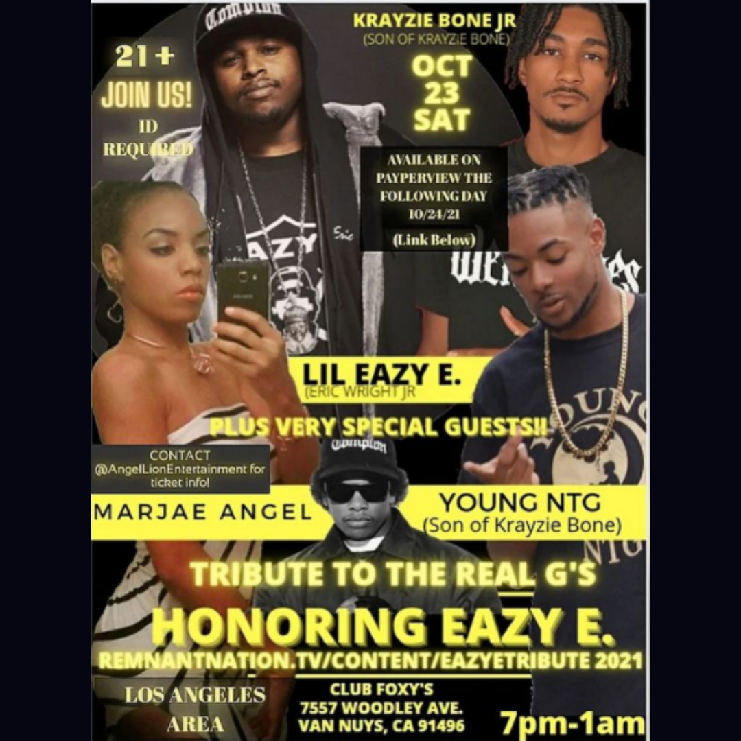 In tribute to fallen Rap Legend Eric "Eazy-E" Wright, His son LilEazy, Bloodline Harmony (Cleve The Harmony God, GoldeeSTIG, SoThrowed, Lil Bizzy & YBL Sinatra), Krayzie Bone Jr., Mar Jae Angel, Compton MUSA, TripJaymez, MoPreme Shakur*Speaks*, Solo Bellafonte, MayBachDice, StreetActive*Speaks*, YoungNTG, Big Animal*Speaks*, and others rip the stage & speak in a Live PPV Concert featuring various artist and comedians.