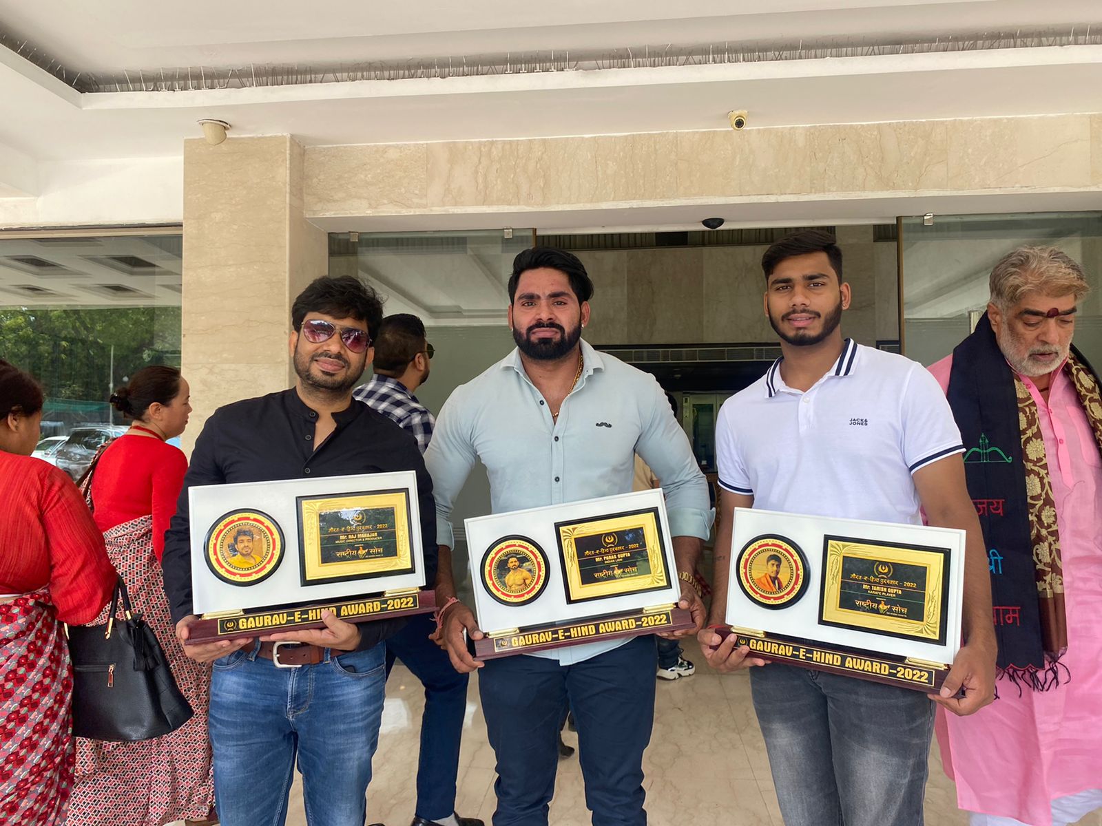 Delhi, India Jul 13, 2022 (Issuewire.com) - Eminent music director and producer, Raj Mahajan received the prestigious ‘Gaurav-e-Hind’ award on Sunday, July 10th, 2022 in Delhi, at the Constitutional Club of India. The award was given to him for his outstanding contribution to the field of music and art by Rashtriya Soch Newspaper led by well-known former cricketer Sumit Pratap Singh. Famous singer Kumar Vishnu handed him the esteemed award during the event. Top celebrities such as Shankar Sahni and many more attended the award function. Raj Mahajan's nephews Mr. India (Body Building) Paras Gupta and Karate Champion Tanish Gupta were also awarded at the event.