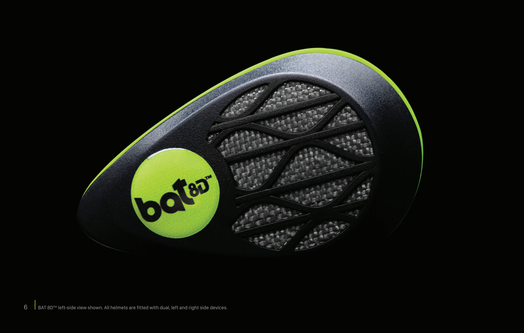 environment. RESONAR® bat 8D™ technology, with NO BATTERIES, re-connects us for a more enhanced ride while improving our awareness of peripheral threats without changing or diminishing the protection provided by the certified helmet.