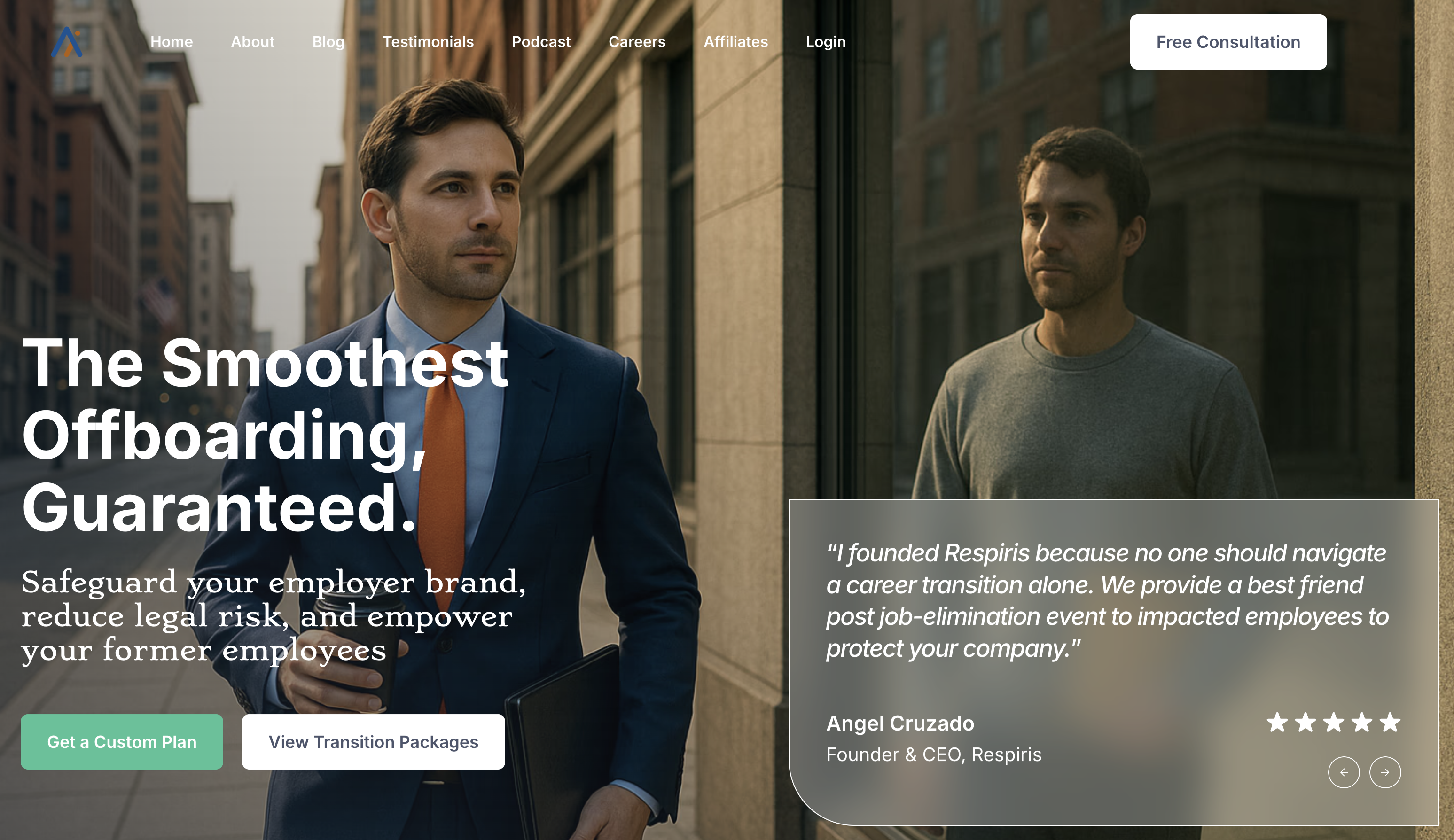 Respiris is a B2B outplacement and transitions platform combining empathy, AI tools, and co-creation to support job loss recovery.
