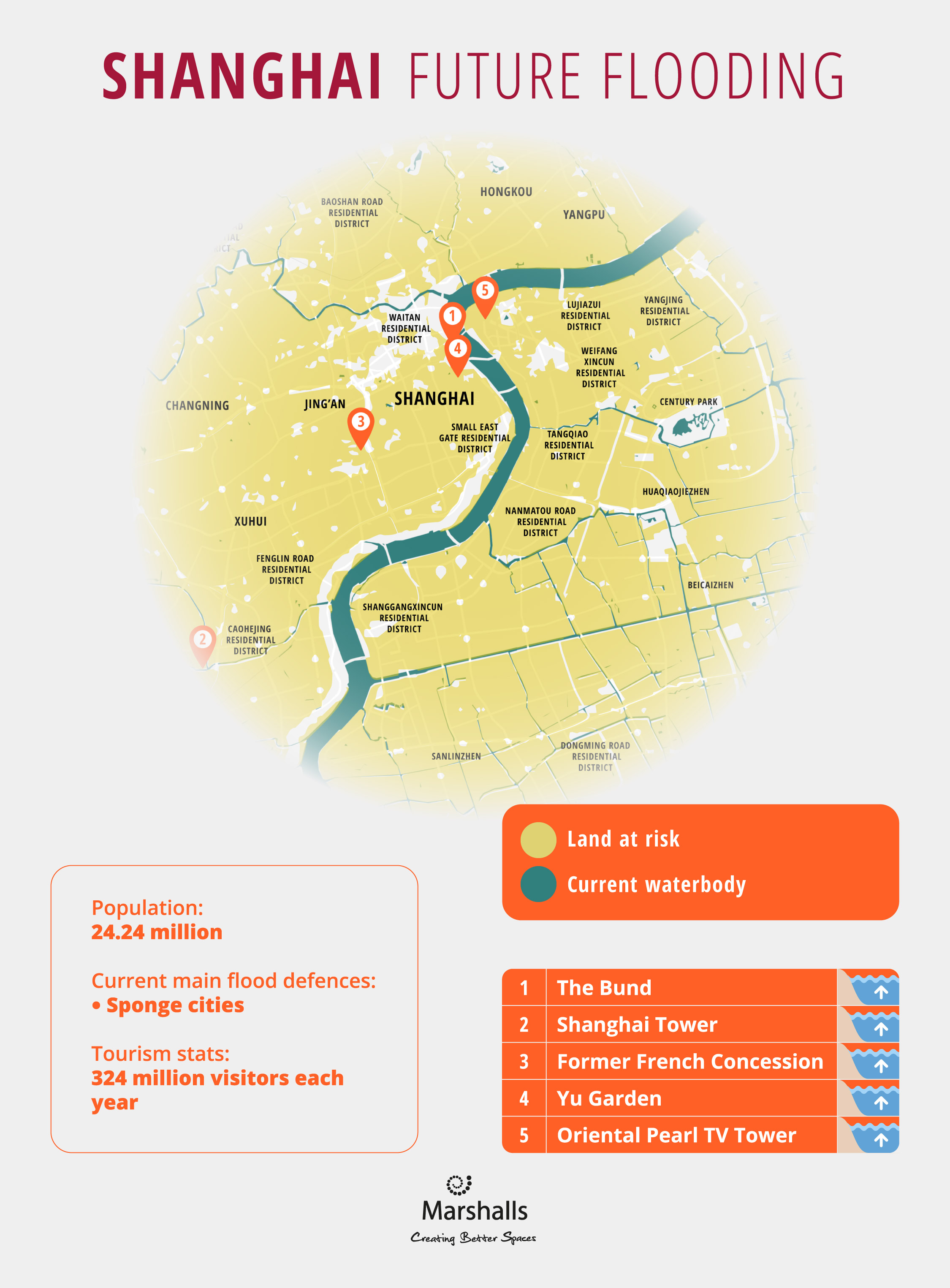 With attractions such as The Bund waterfront promenade, Shanghai Tower and the Yu Garden helping to bring in 324 million visitors every year, the research highlights that all of the most popular tourist attractions in Shanghai would be at risk of regular flooding within the next 50 years based on current predictions. The Chinese municipality is battling against this potential future by creating a ‘sponge city’ of wetlands, green rooftops and rain gardens to ensure any encroaching water can be absorbed back into the land rather than running off back into storm drains and waterways.