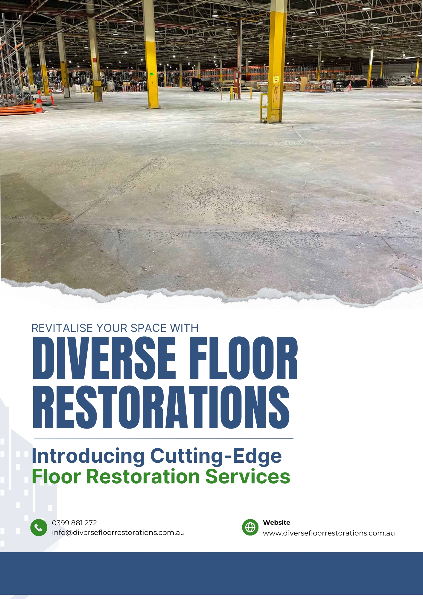 Melbourne, Victoria May 6, 2024 (Issuewire.com) - Diverse Floor Restorations, the top concrete floor restoration company in Melbourne, is pleased to share the introduction of its state-of-the-art floor restoration services designed specifically for large commercial establishments. Diverse Floor Restorations provides various services tailored to each client's specific demands while maintaining a passion for revitalising places and a dedication to excellence.